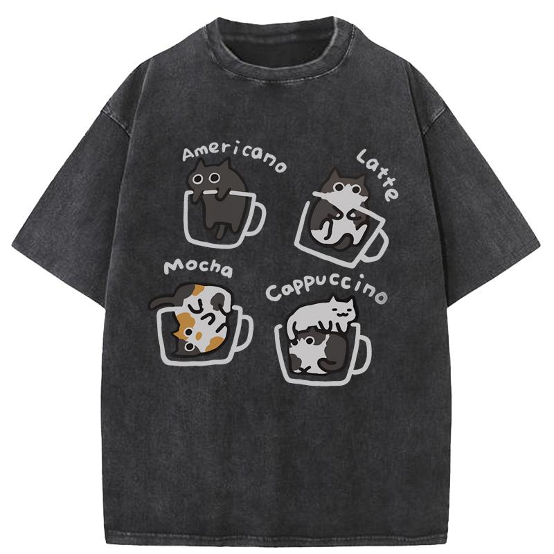 Футболка из чистого хлопка с принтом «Кошка Кофе» Летняя свободная футболка с короткими рукавами для мужчин и женщин Футболки с принтом «Кошка Три Цветка» для веселых кошек