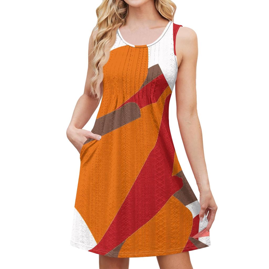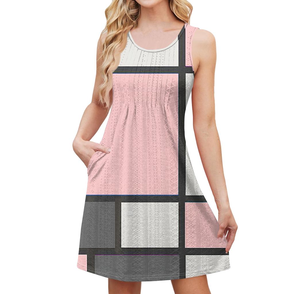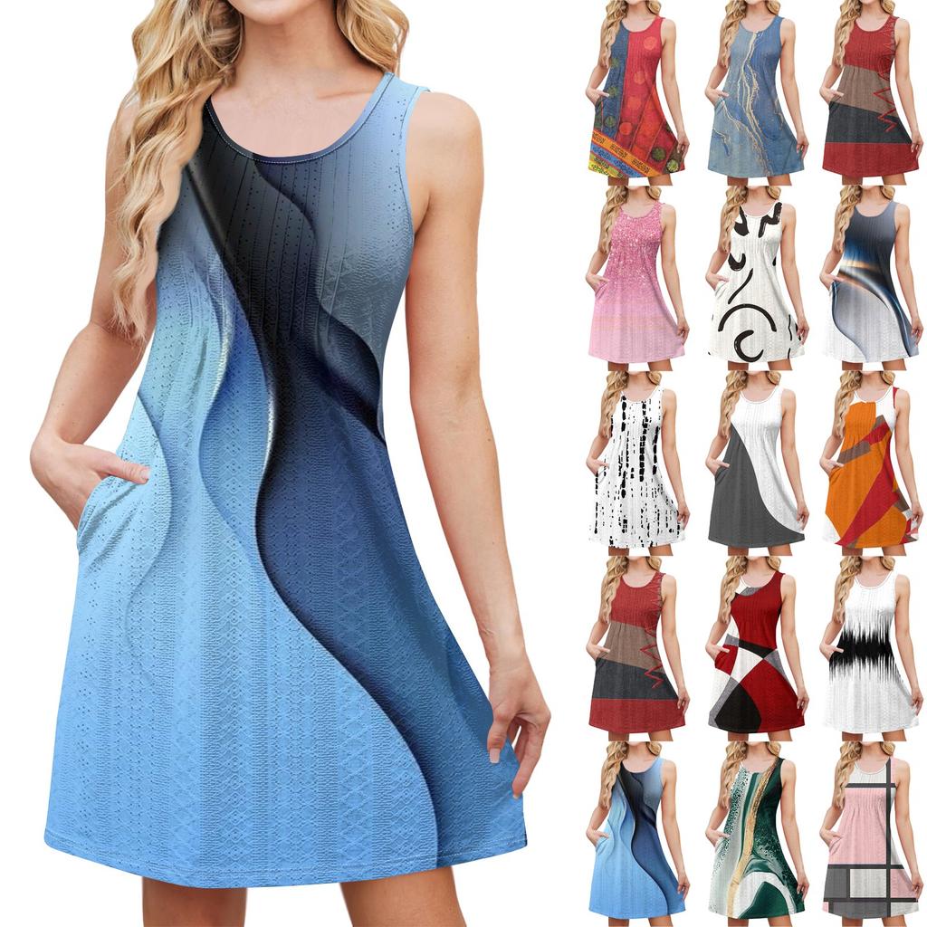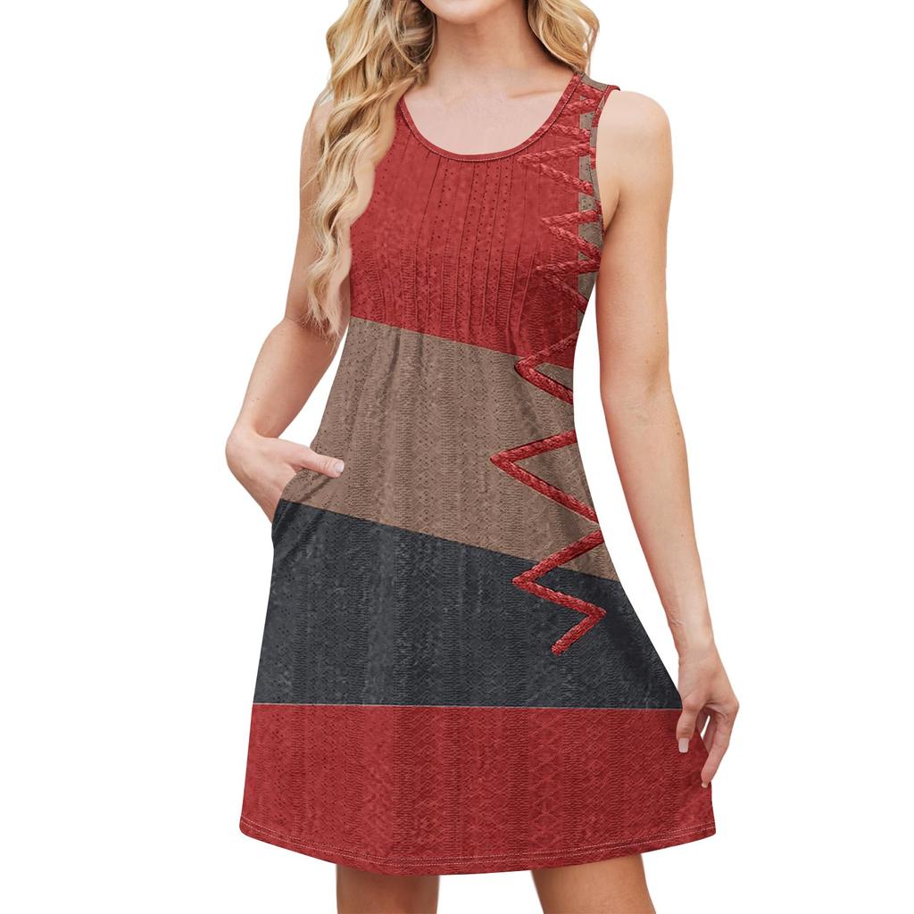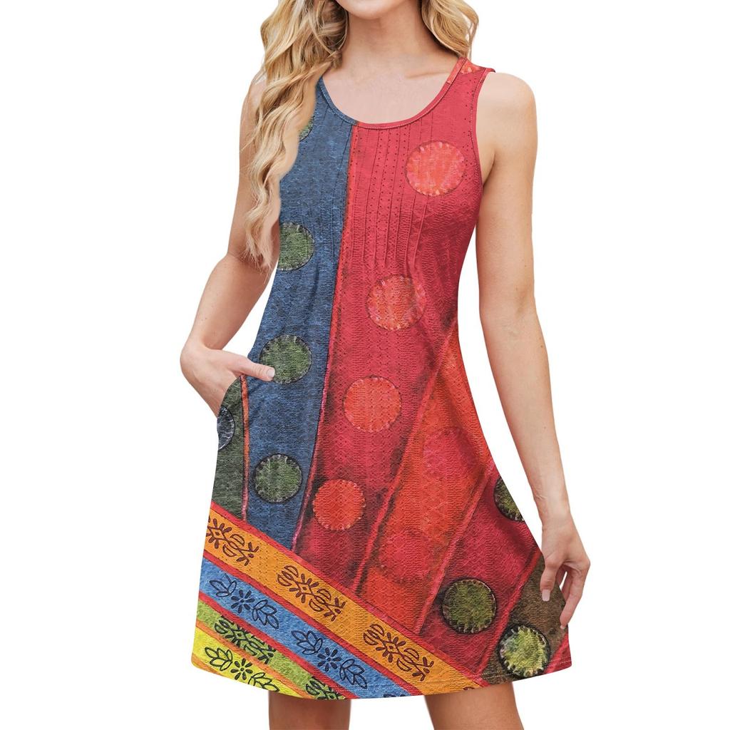 Женский стильный повседневный свободный винтажный сарафан без рукавов с принтом в стиле пэчворк и карманами, летний пляжный сарафан