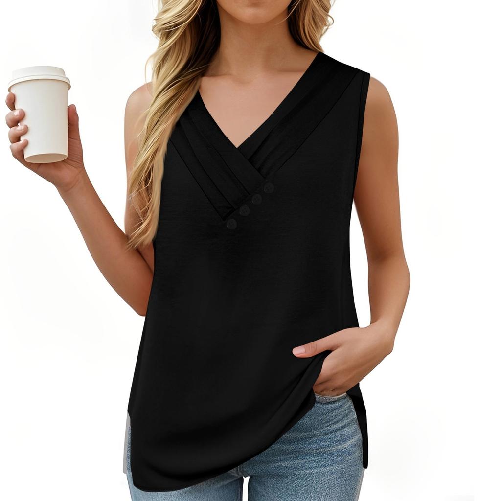 Женская однотонная жилетка, летняя футболка на пуговицах с V-образным вырезом, без рукавов, свободный модный топ