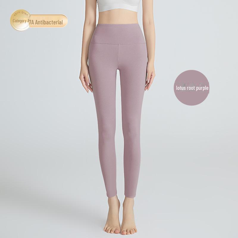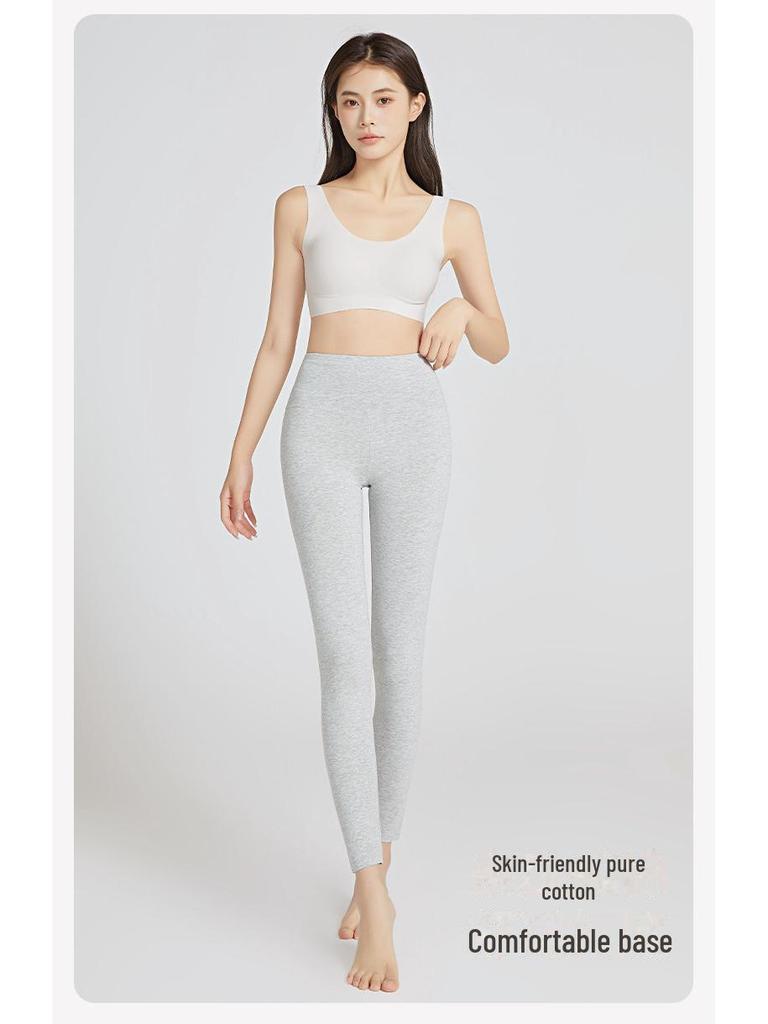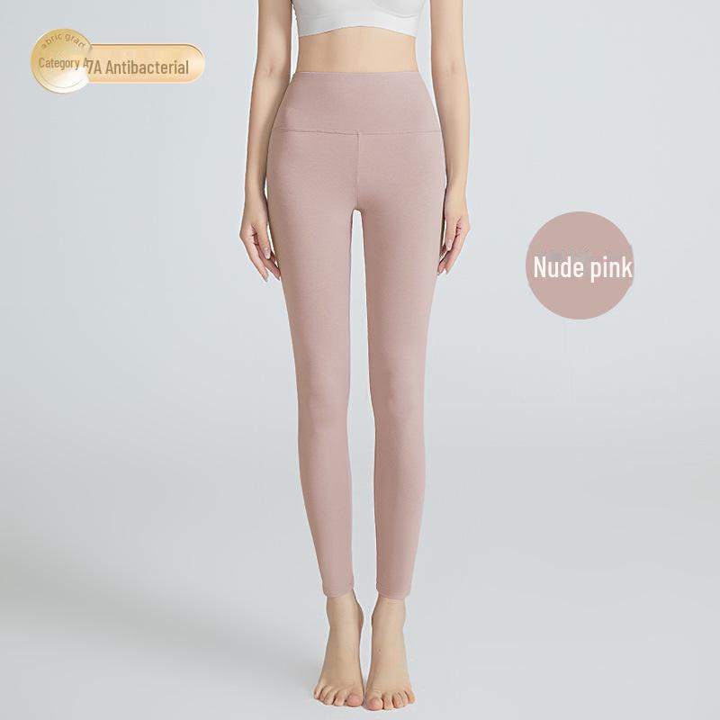 Женские осенние леггинсы с высокой талией из антибактериального хлопка 3A — облегающие, теплые и приподнимающие бедра.