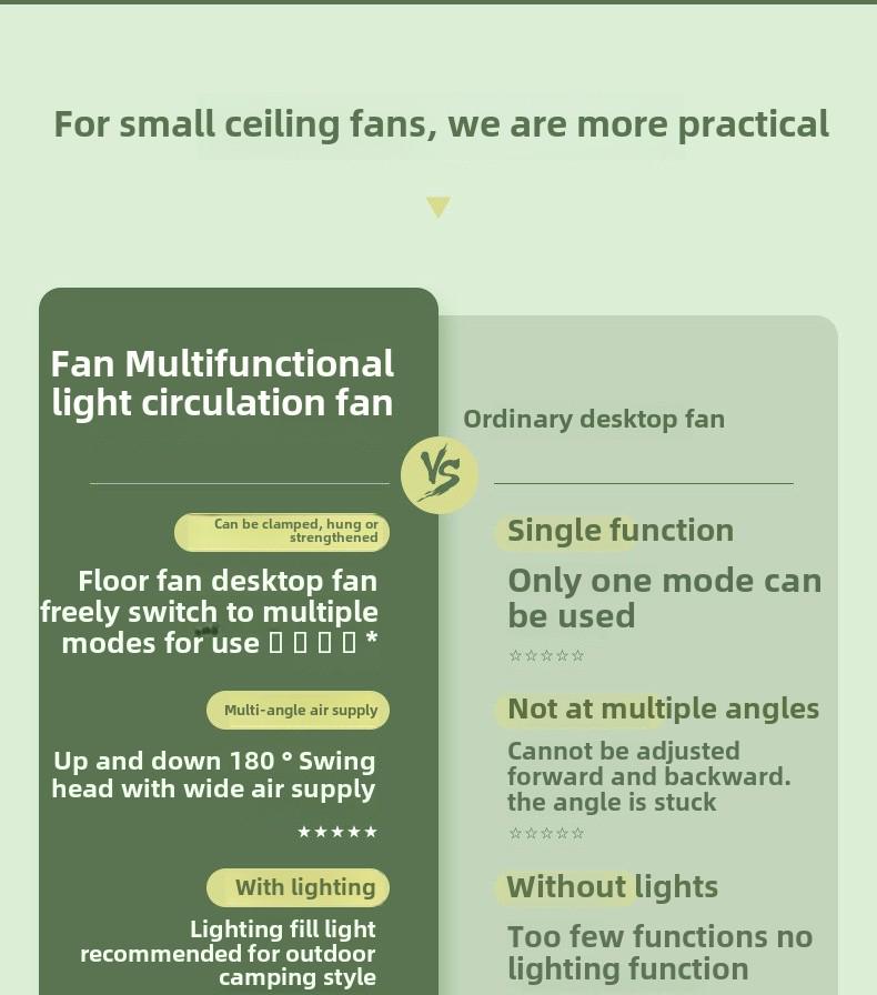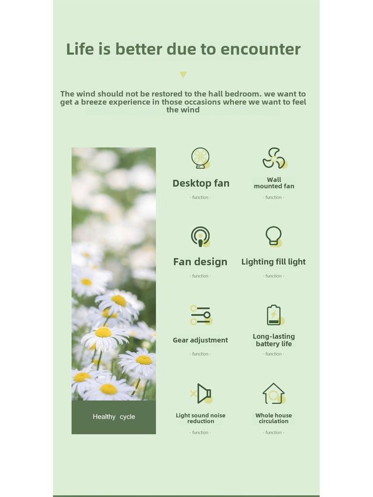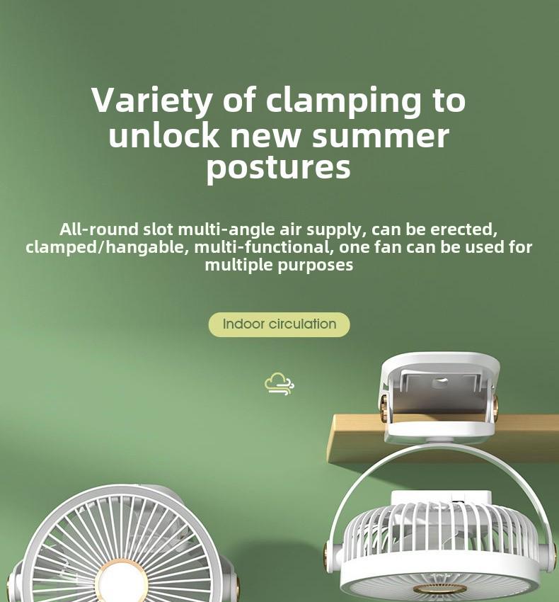 USB-перезаряжаемый вентилятор с пристегивающейся крышкой и ночником для общежитий и офисов