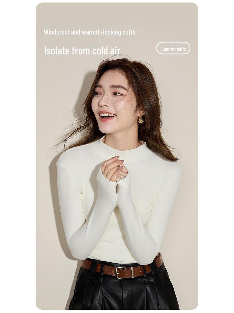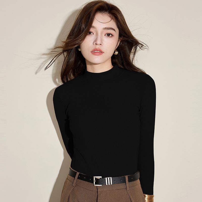Женский кашемировый облегающий топ с длинным рукавом и полуводолазкой на осень/зиму