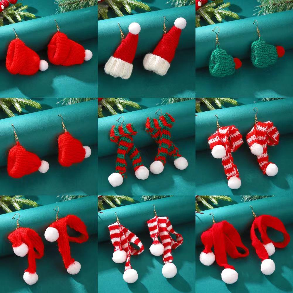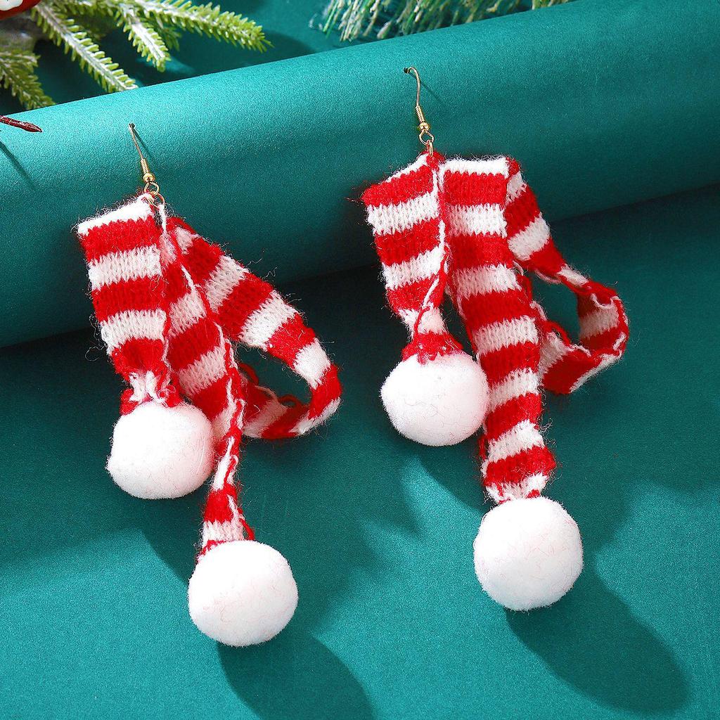 Вязаная шерстяная шапка с шарфом и меховыми серьгами-шариками в европейском и американском рождественском стиле для девочек