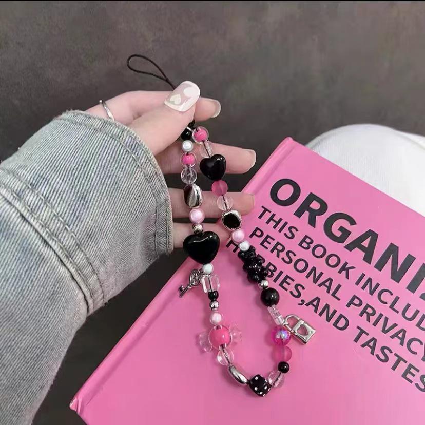 Розово-красная цепочка для телефона в стиле Y2K с сердечком, шнурком для камеры CCD и подвеской в виде медведя