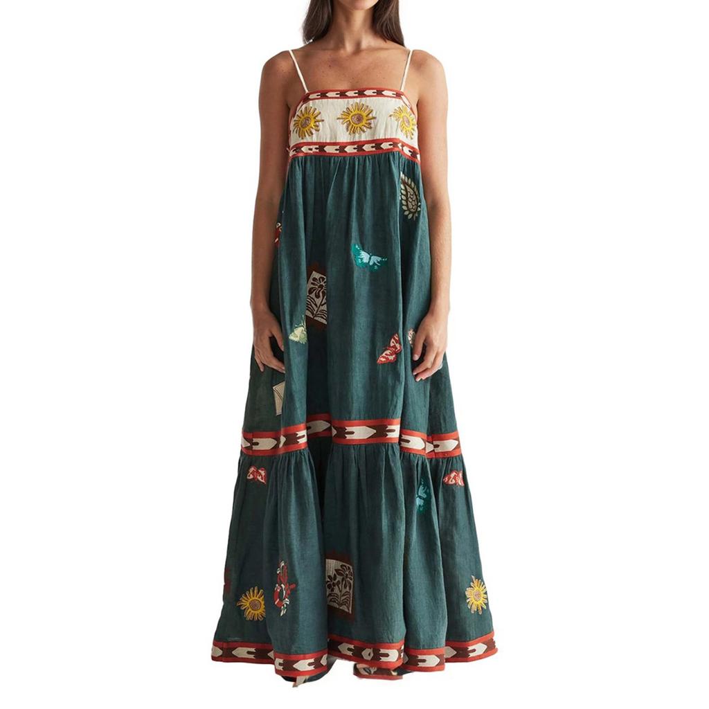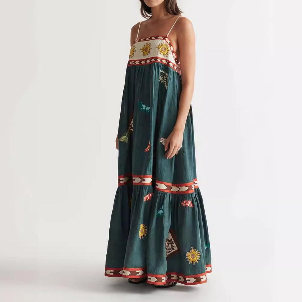 Летнее женское элегантное платье с принтом на эластичной спинке, стили для отпуска, длинные платья с французским цветочным принтом и бретельками через шею