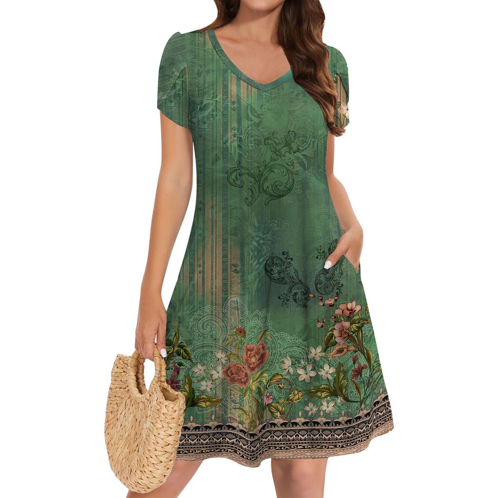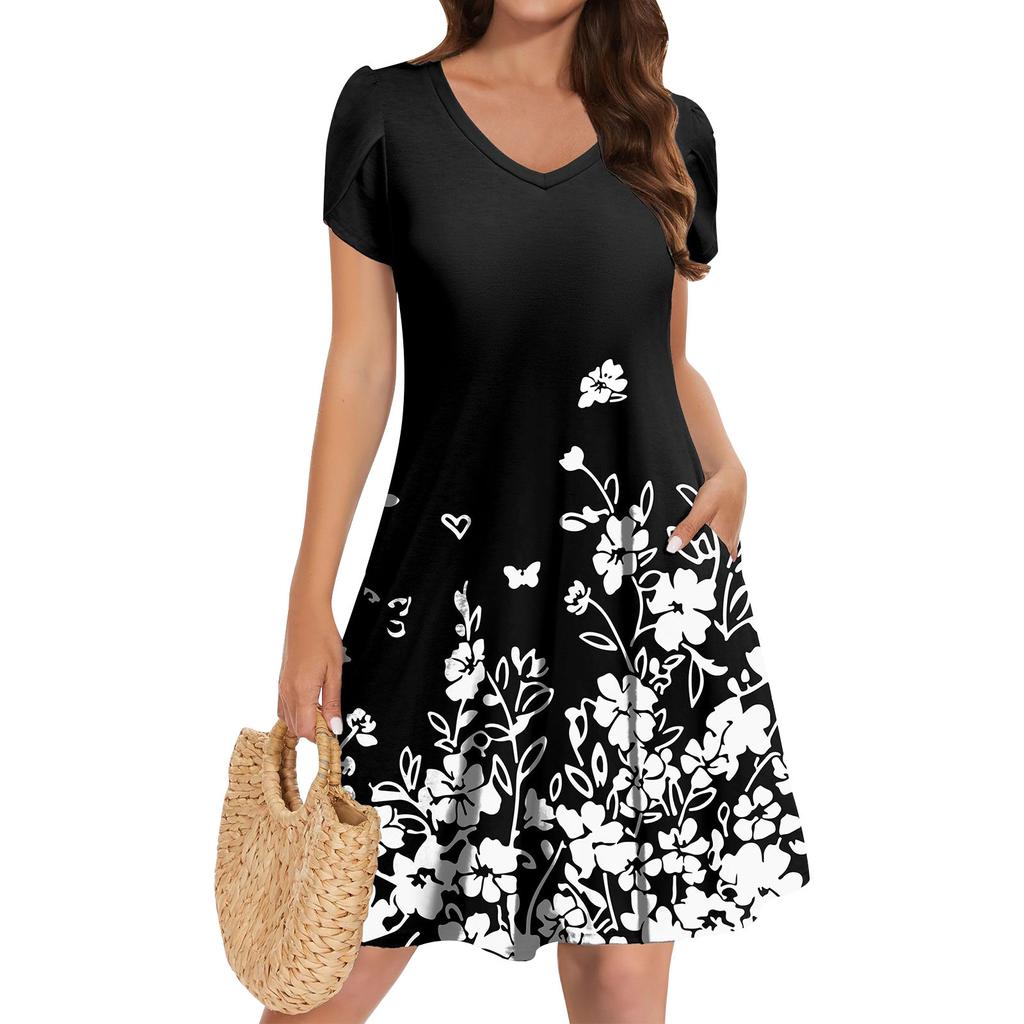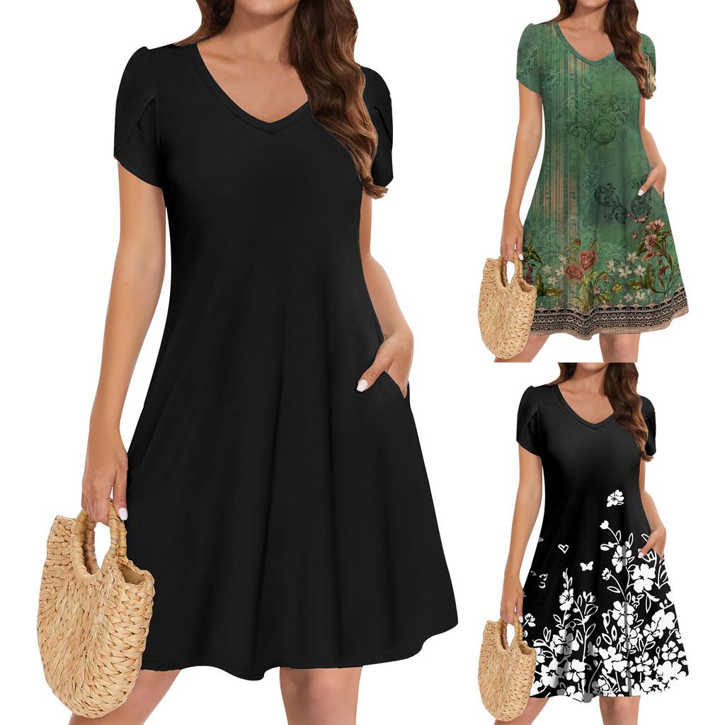 Женское платье с V-образным вырезом, летнее платье с плиссированной резинкой на талии, А-силуэтное платье