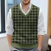 Мужской жилет без рукавов с клетчатым принтом и V-образным вырезом, вязаный джемпер