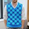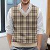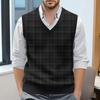 Мужской жилет без рукавов с клетчатым принтом и V-образным вырезом, вязаный джемпер