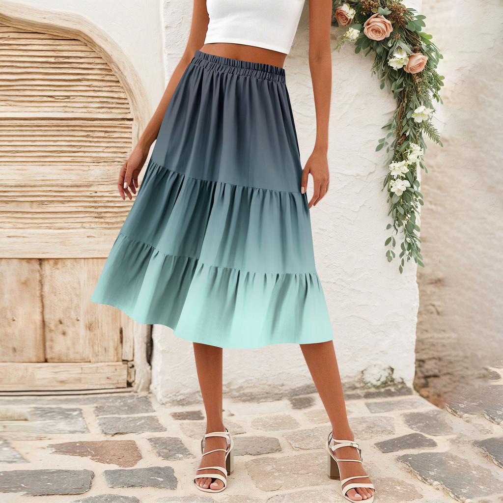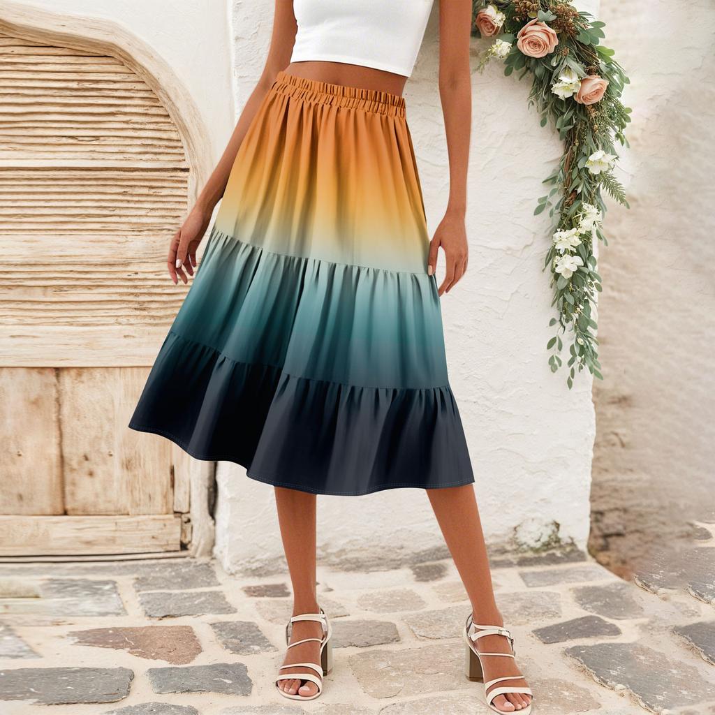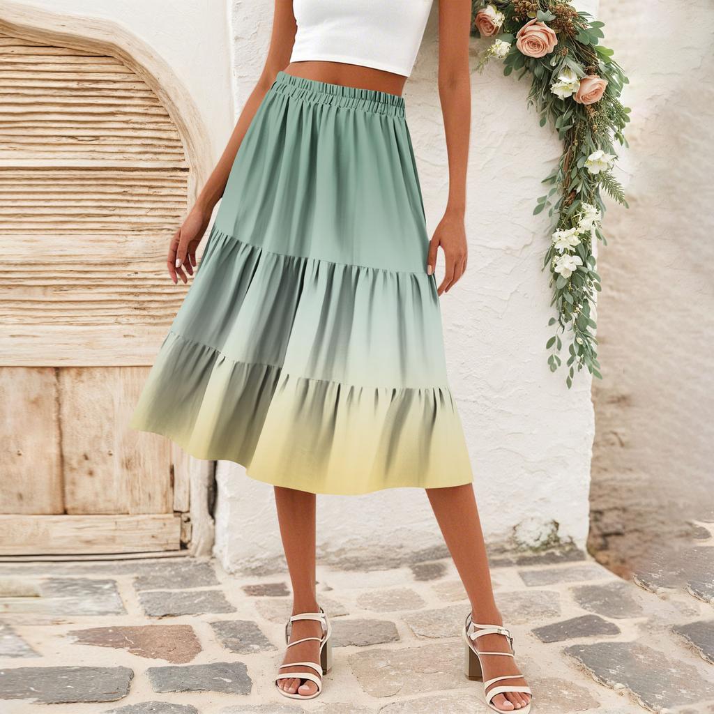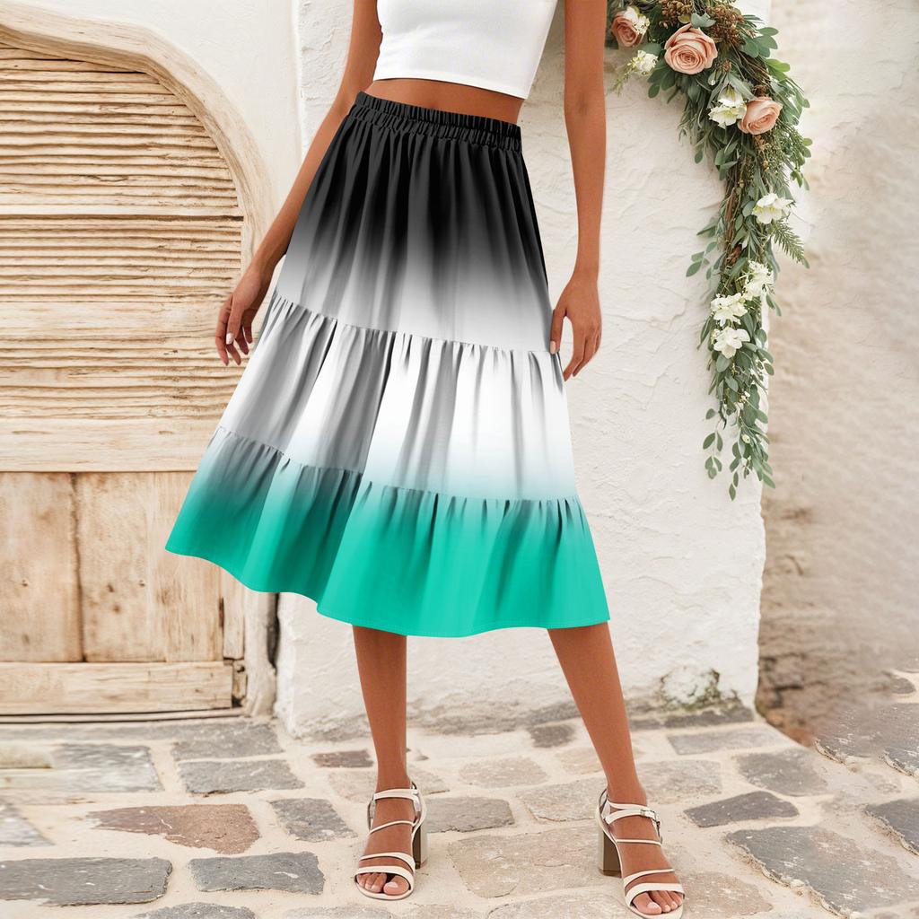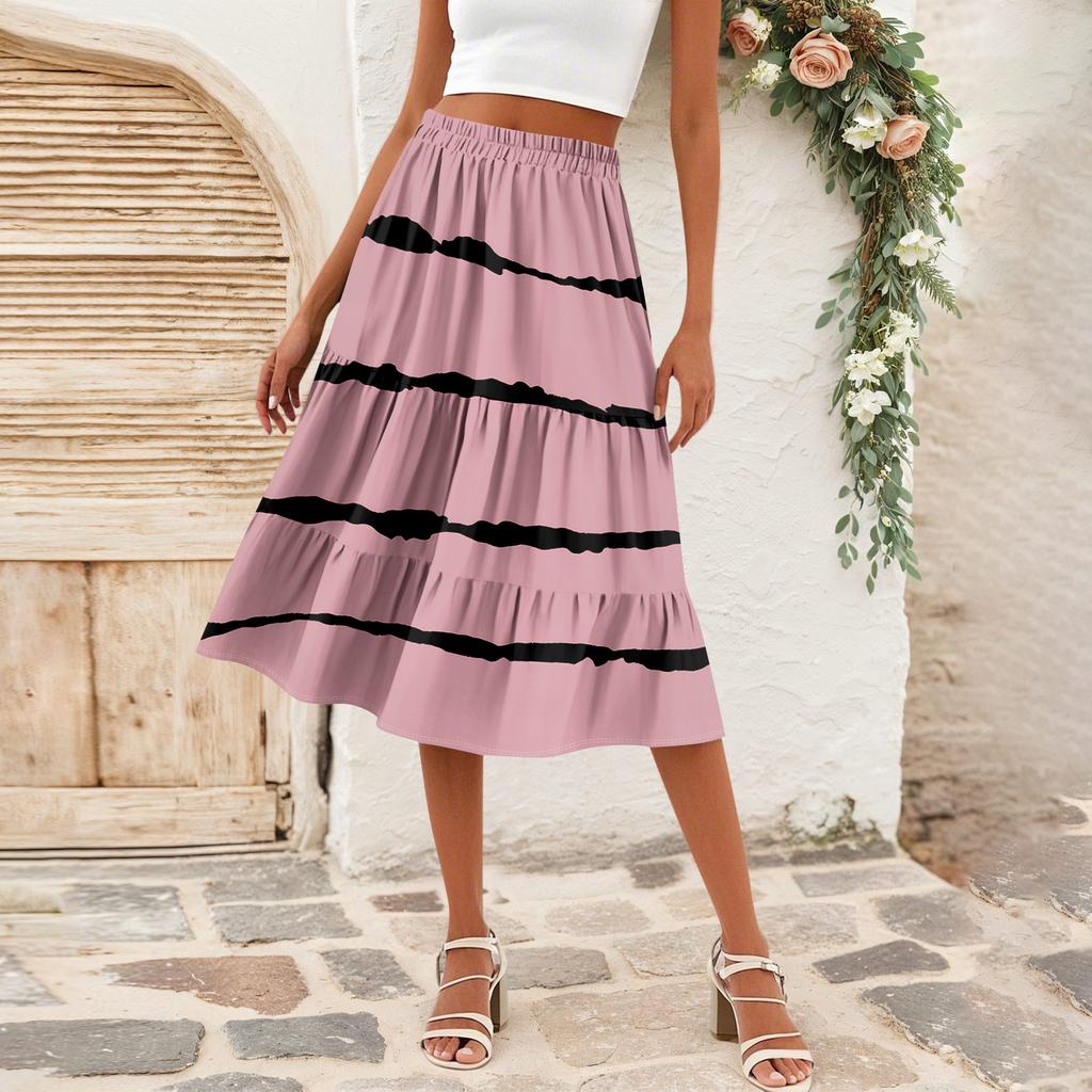 Женская повседневная юбка А-силуэта с высокой талией, юбка в полоску с принтом в горошек и карманами