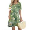 Женские летние платья Женские летние платья с цветочным принтом Повседневные платья с коротким рукавом и круглыми карманами