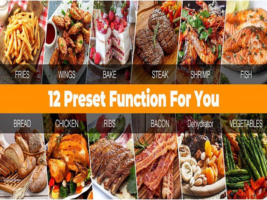 12 предустановленных функций приготовления предназначены для приготовления различных ингредиентов, и вы можете наслаждаться едой одним щелчком мыши.