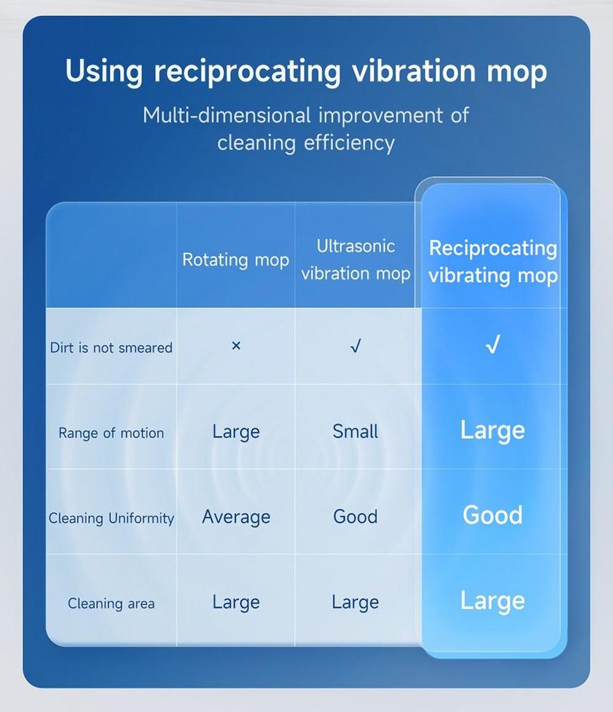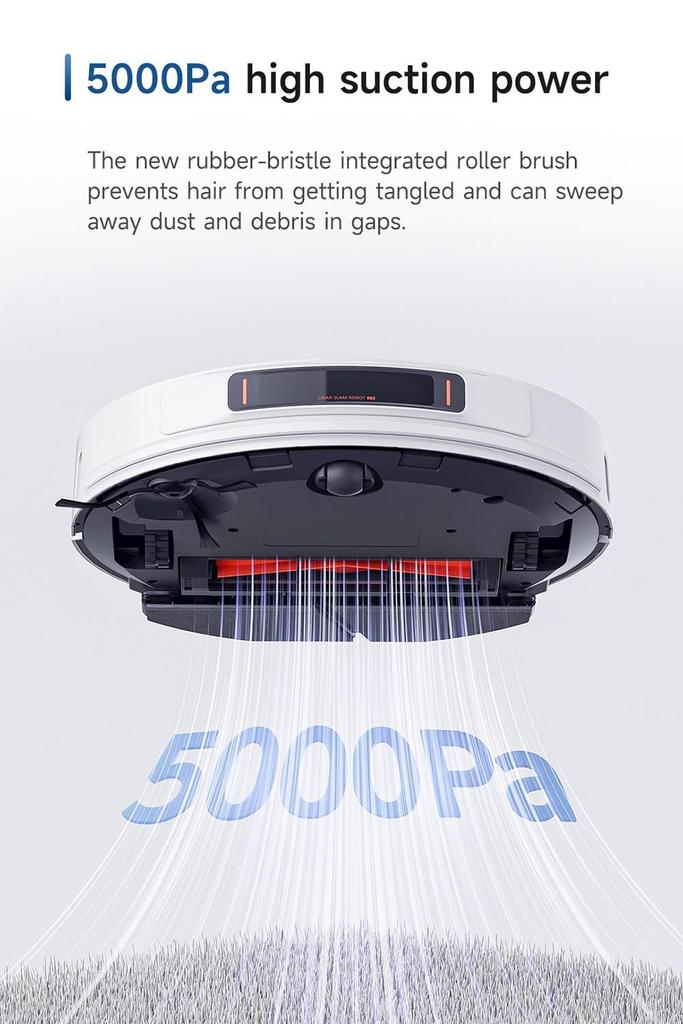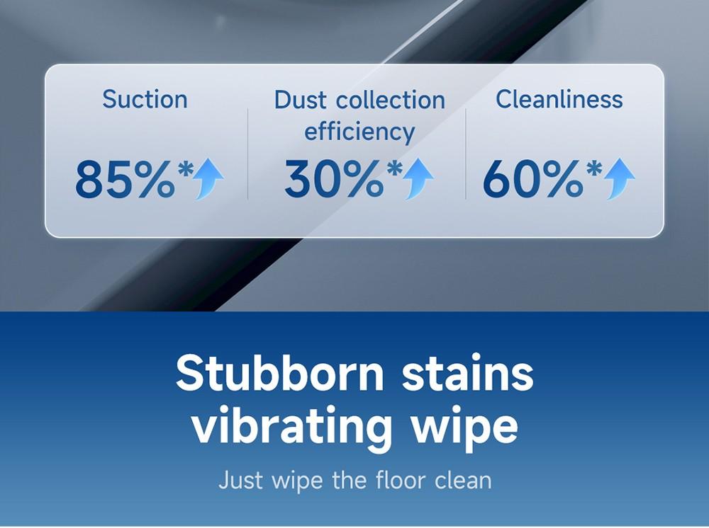ROIDMI EVE MAX оснащен высокопроизводительным бесщеточным двигателем, который может обеспечить большую мощность всасывания 5000 Па.. Инновационная роликовая щетка с резиновой щетиной уменьшает спутывание волос.. Кроме того, он имеет высокоскоростную чистку 320 раз в минуту, имитируя протирку пола человеческими руками, и легко оттирает сухие пятна от кофе.
