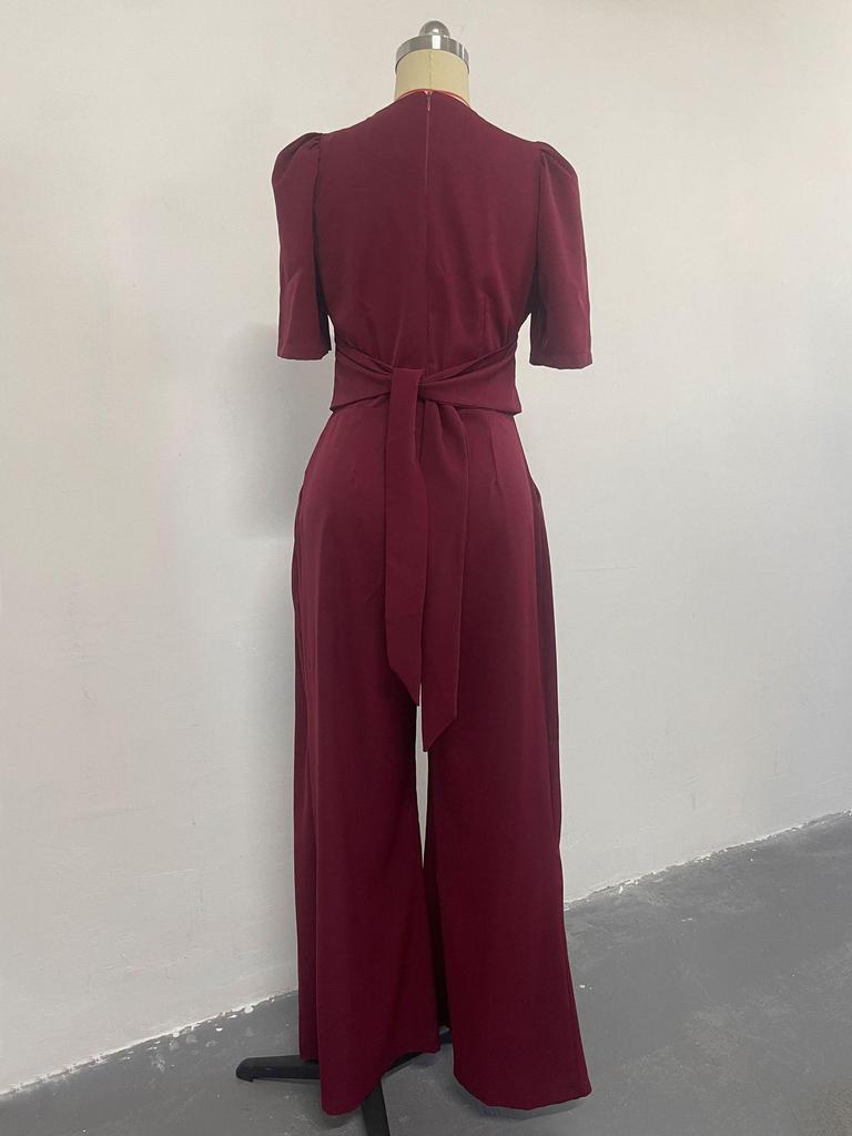 Весна 2025 Женский кружевной комбинезон с V-образным вырезом, высокой талией и рукавами-фонариками
