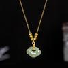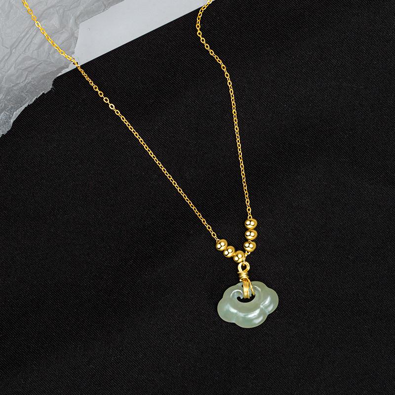 Ожерелье из серебра 925 пробы с замком мира и нефритом Хэтянь и цепочкой для ключицы из золота 14 карат, с подвеской в виде ретро-замка долголетия Жуи для женщин.