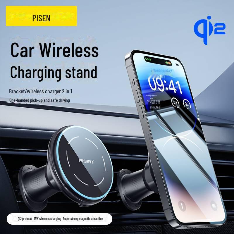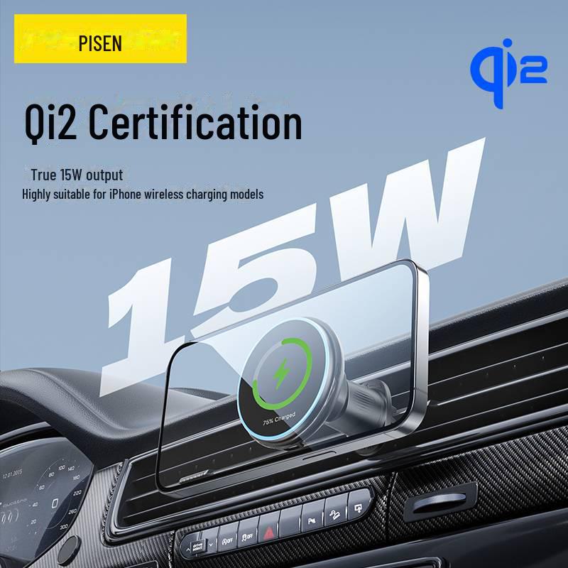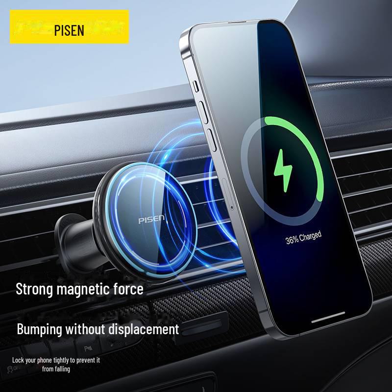 PISEN Wireless Car Charger & Magnetic Phone Holder for Fast Charging and Navigation Compatible with Apple Devices