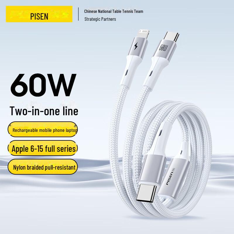 PISEN 60W Кабель для быстрой зарядки Type-C с двумя головками для Apple и Huawei
