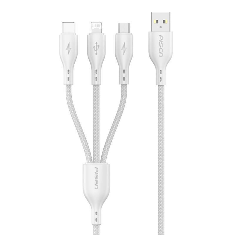 PISEN 3-в-1 плетеный кабель для зарядки для устройств Apple и Android