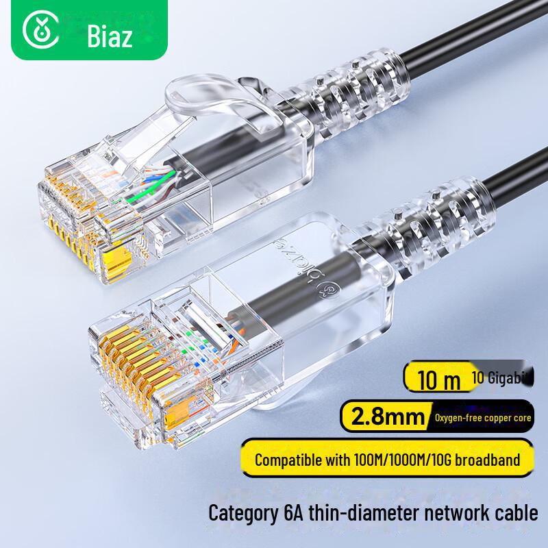 Сетевой кабель Biaz WX21 Black CAT6A, Тонкий, Бескислородная медь