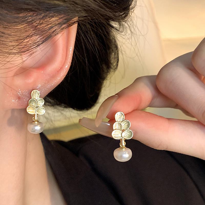 Серебряные серьги с корейским цветочным жемчугом S925 — модный, простой, универсальный дизайн для женщин