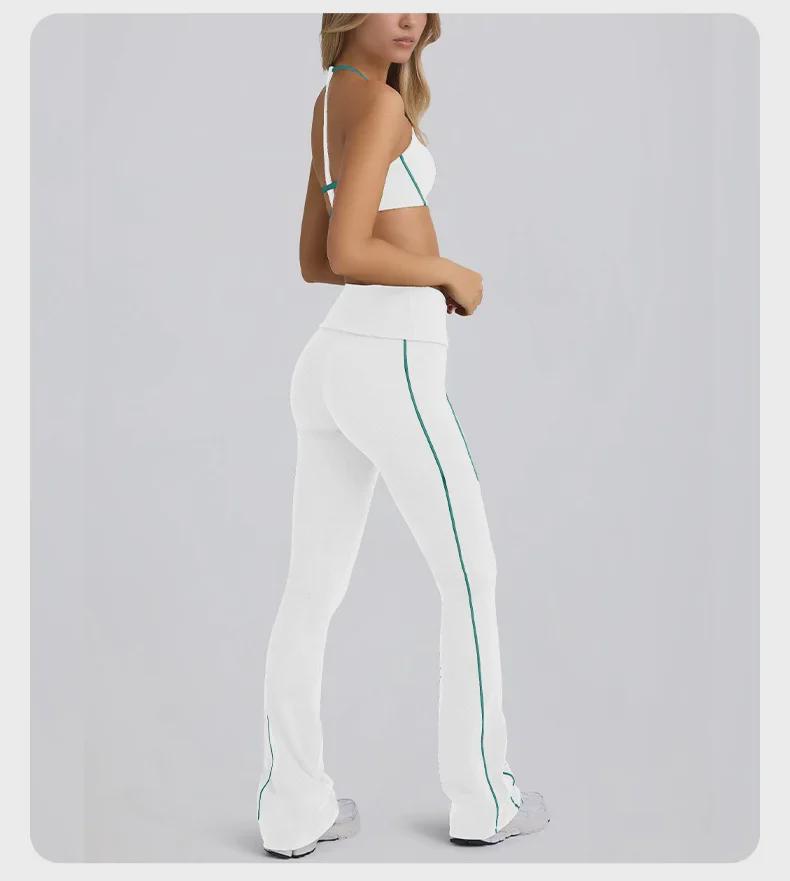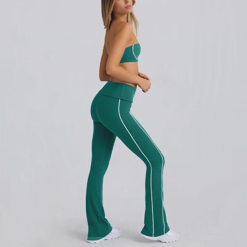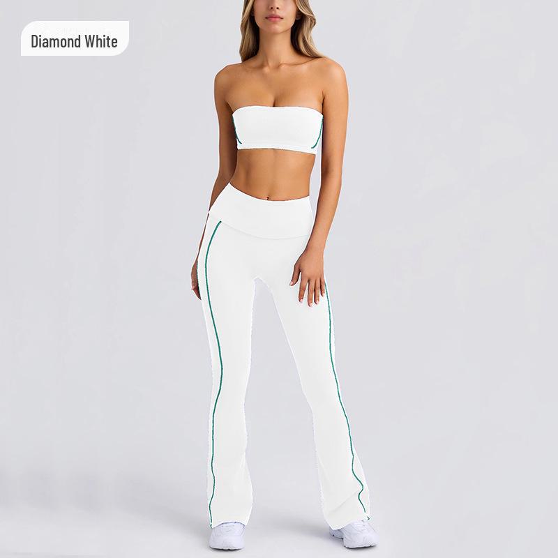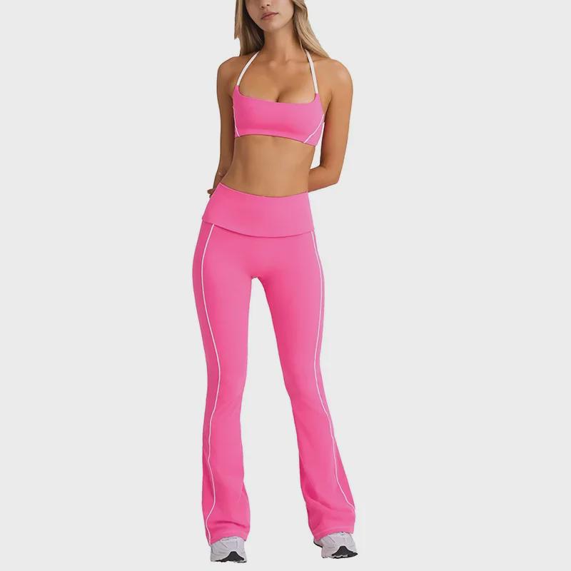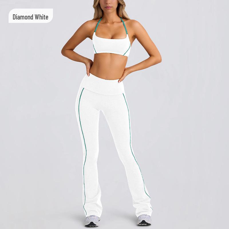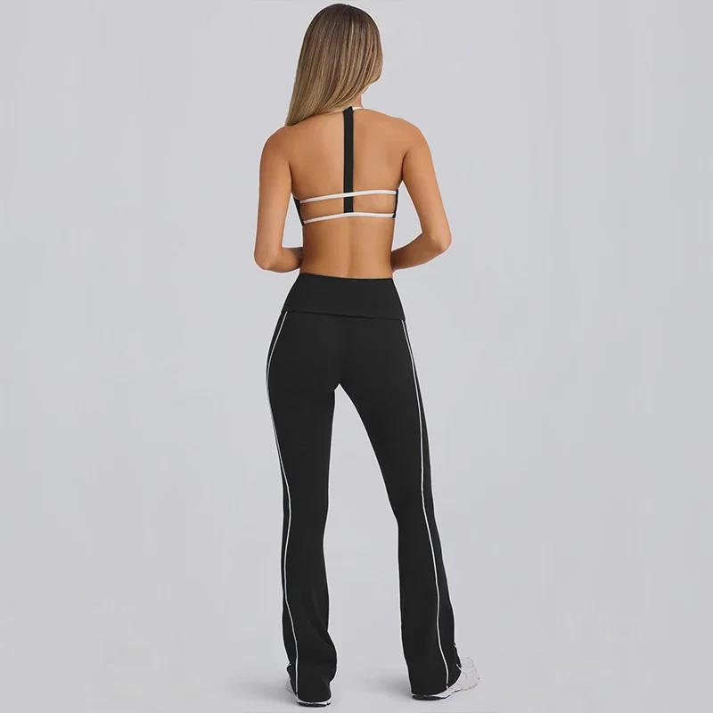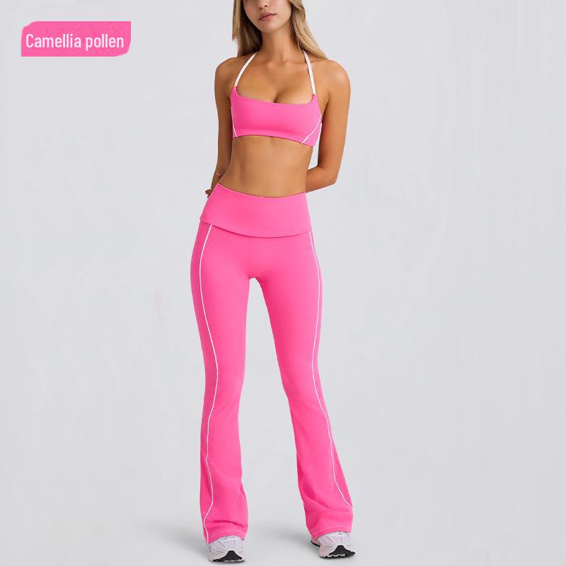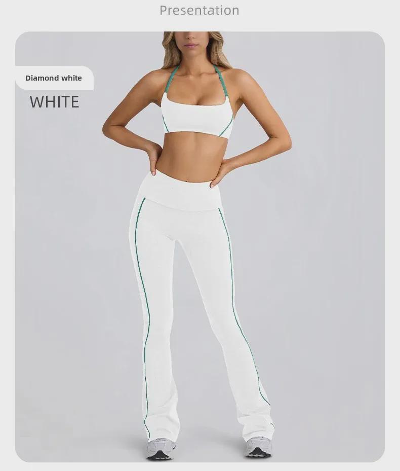 Осенний женский комплект для йоги: Спортивный бюстгальтер телесного цвета и расклешенные брюки для фитнеса