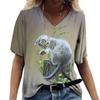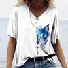 Женская уличная мода футболка с рисунком кота 3D печать короткий рукав универсальная повседневная свободная женская одежда с V-образным вырезом