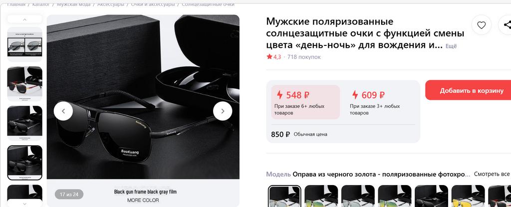 Не оправдали ожидания !Очки отличаются от заявленных. Крайне плохого качества. Такие можно найти на любом рынке по цене не более 300 руб.