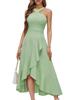 Женское коктейльное платье с оборками и бретелью через шею в европейском и американском стиле 2025 года — выпускное, официальное и для подружек невесты