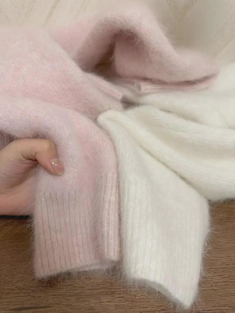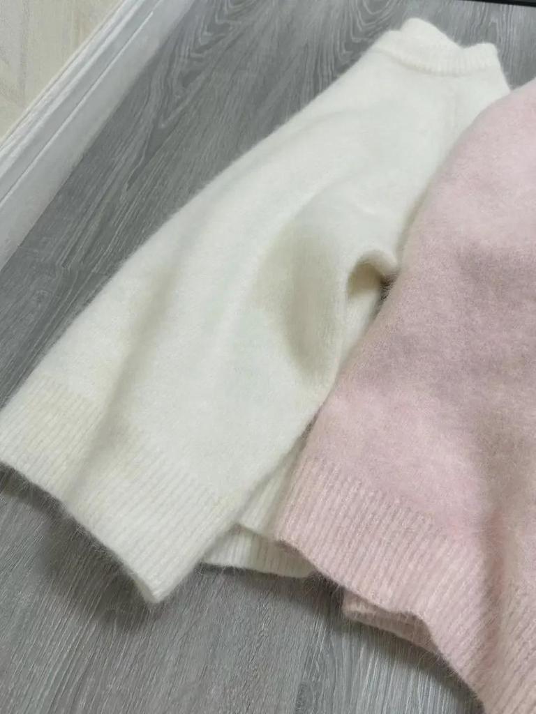 Женский розовый мохеровый свитер — утолщенный, мягкий, облегающий на осень/зиму 2024 г.