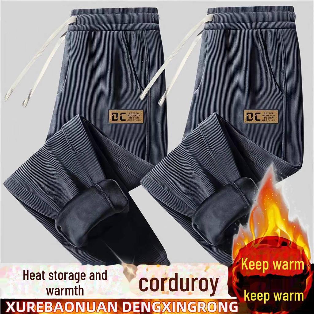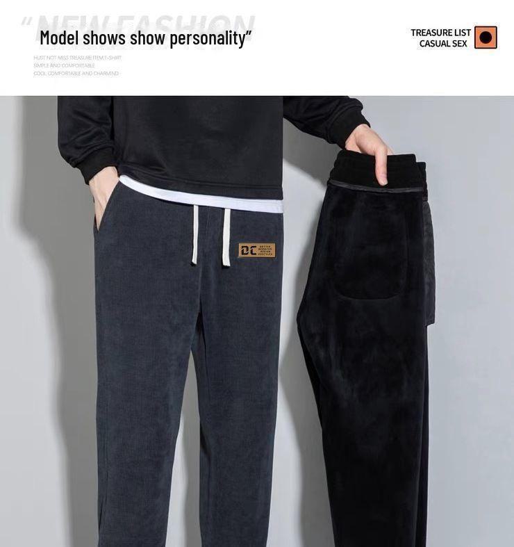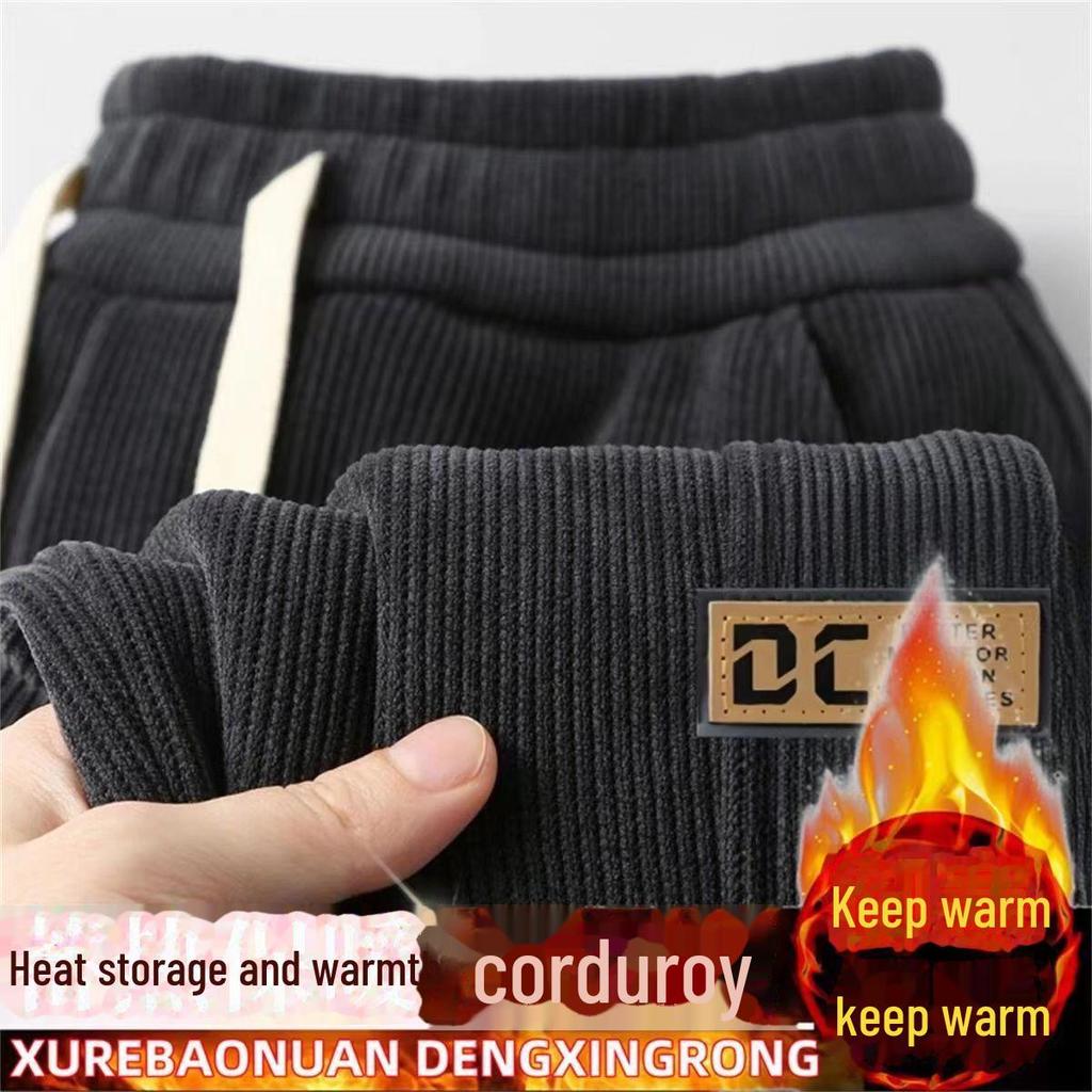 Мужские спортивные брюки из вельвета с манжетами - осень/зима 2024, плюс бархат, утолщенные повседневные брюки