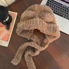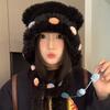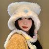 Теплая плюшевая шапка с ушками медведя и кошачьим бантом для женщин – защита ушей на осень/зиму с открытым лицом