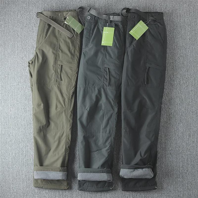 Мужской быстросохнущий свободный прямой комбинезон с множеством карманов и бархатные осенне-зимние боевые брюки