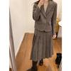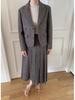 Шикарный комплект из шерстяного короткого пальто с узором «елочка» и плиссированной юбки для женщин