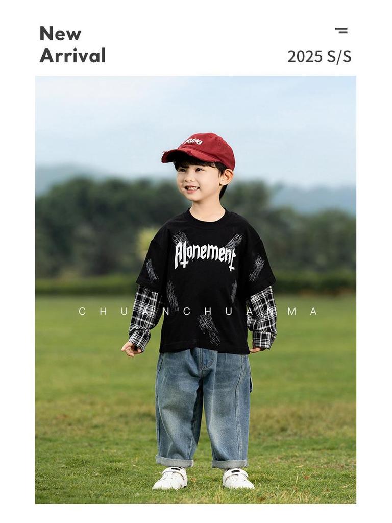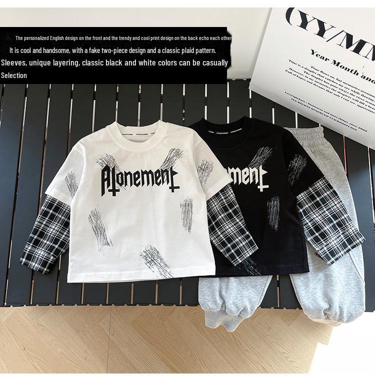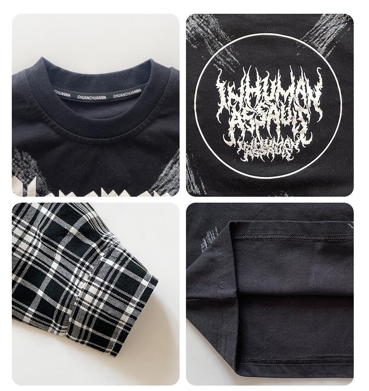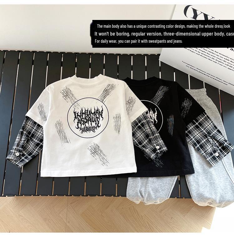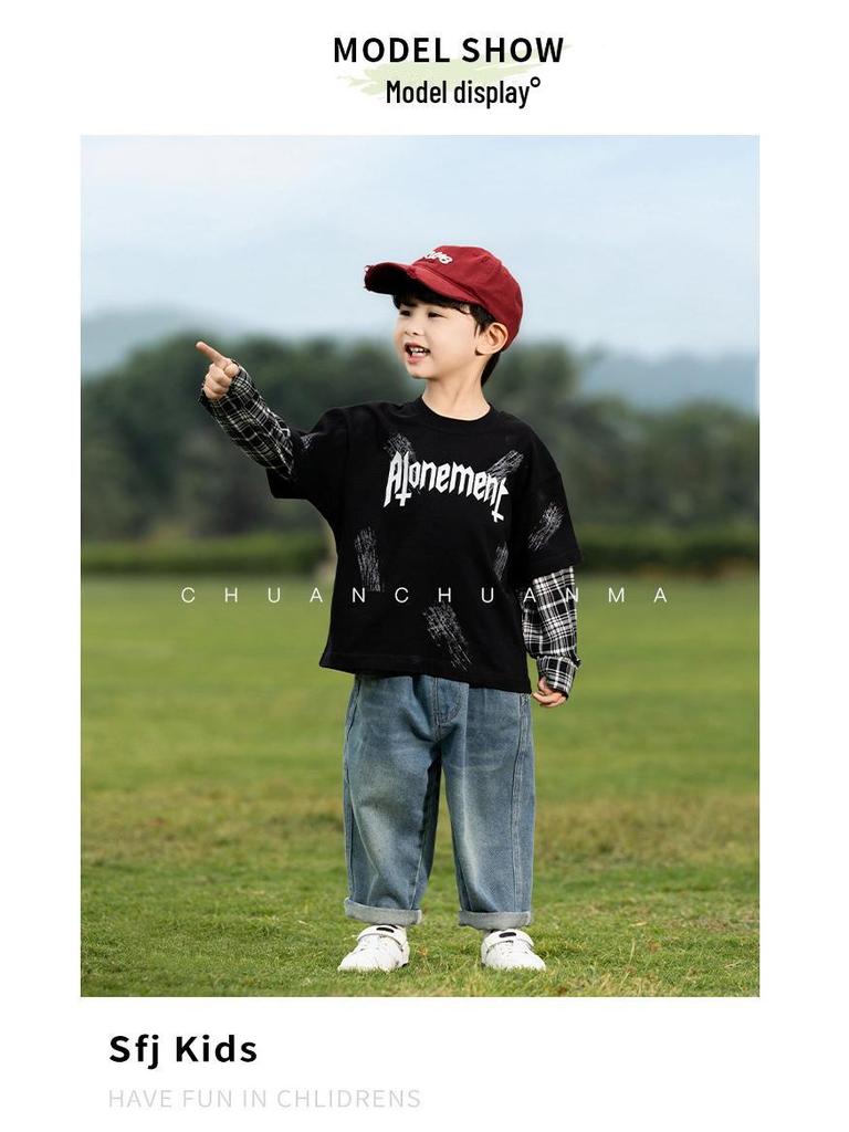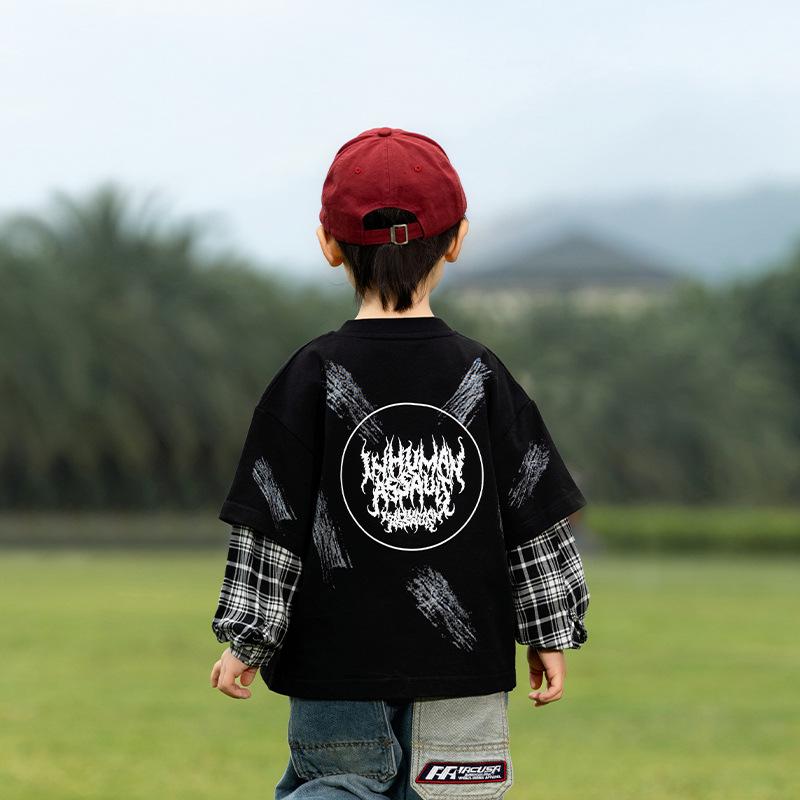 Эта модная вещь станет стильным и удобным дополнением к гардеробу вашего ребенка и олицетворяет суть корейской моды.. Эта футболка с длинными рукавами идеально подходит для современного образа и отличается уникальным клетчатым узором, состоящим из двух частей, который создает иллюзию многослойности.. Изготовлен из высококачественного хлопка, обеспечивает мягкость и воздухопроницаемость, идеально подходит для повседневной носки.. Игривая отделка буквами добавляет нотку юношеского очарования, делая его идеальным для школы или повседневных прогулок.