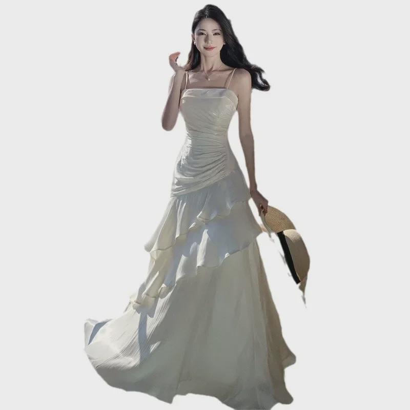 Французская элегантность: Высококачественное платье на день рождения для совершеннолетия - длинная юбка в стиле слинг