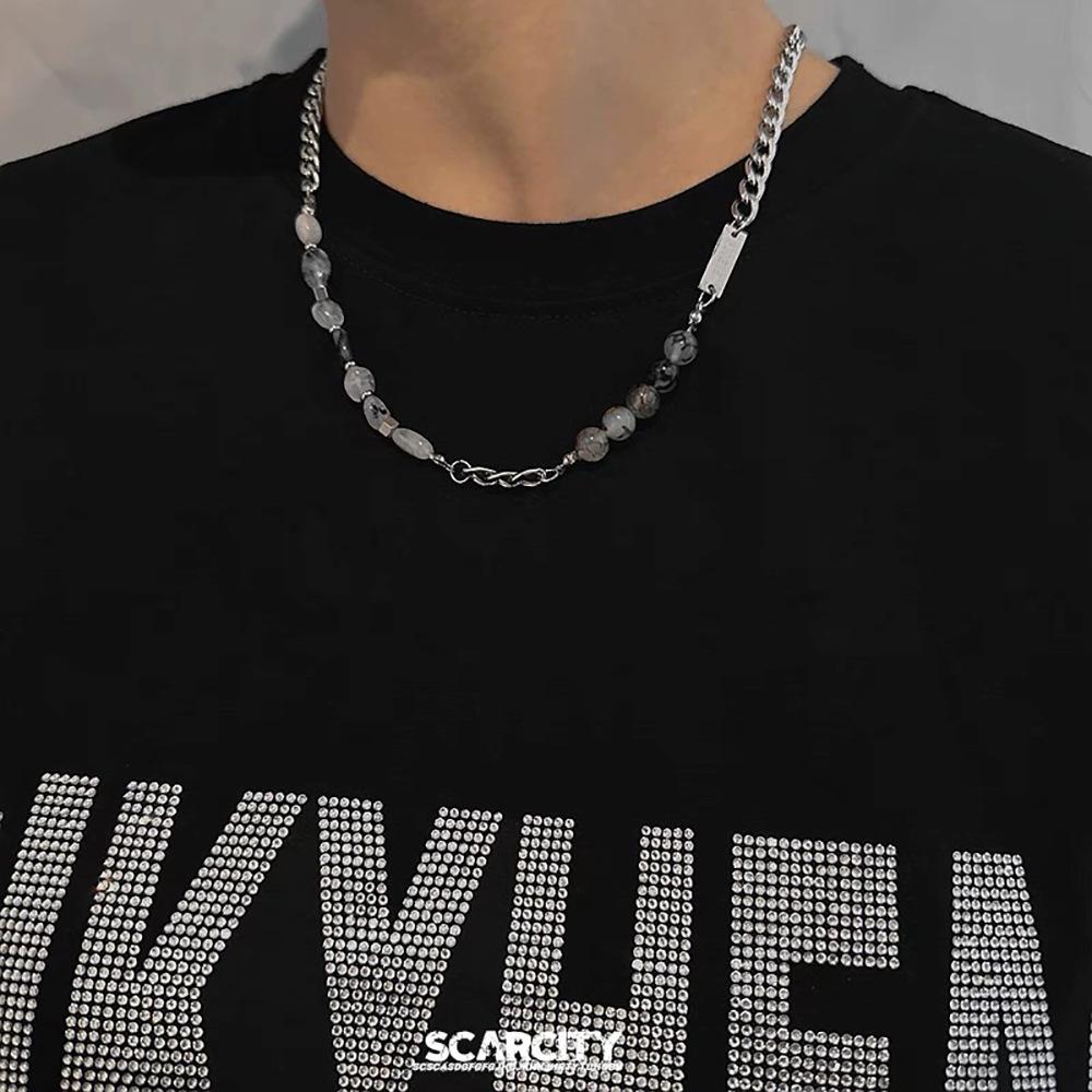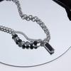 Квадратное фирменное ожерелье из титановой стали с черными и белыми кристаллами - высококачественная универсальная цепочка для свитера