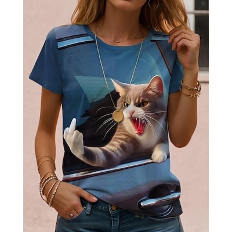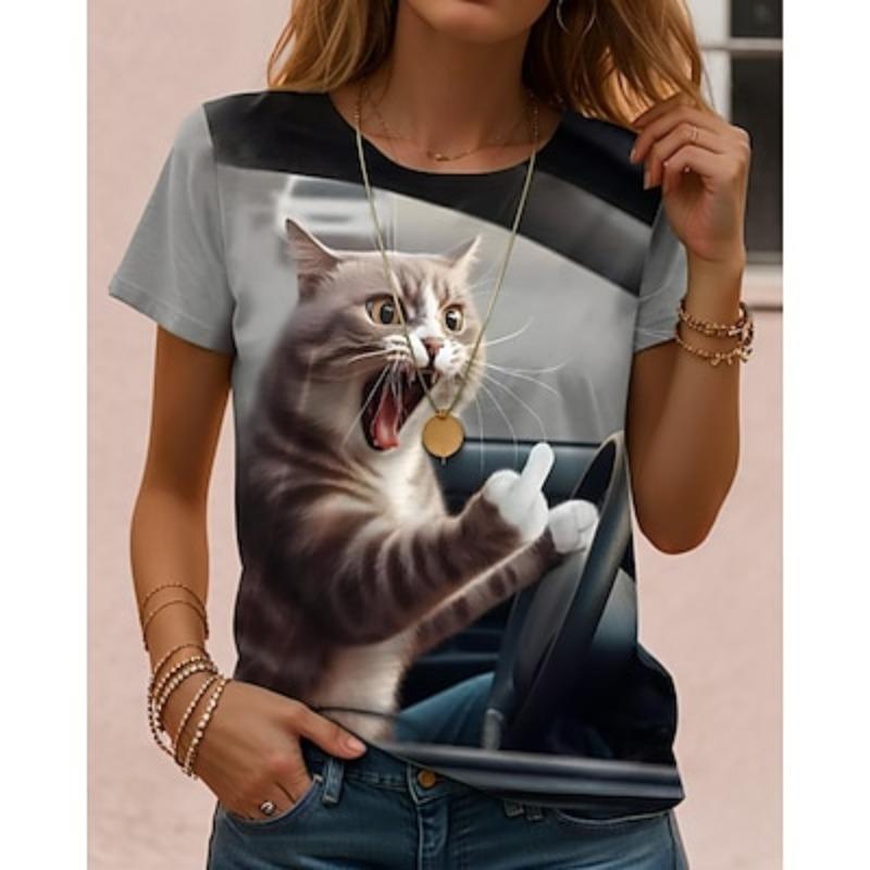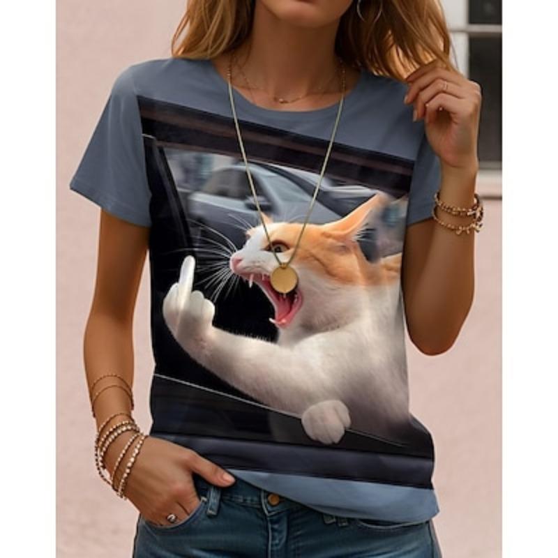 Женская футболка с принтом животных и буквами, повседневная, с коротким рукавом, круглым вырезом, обычные топы, повседневные, выходные, принт, лето