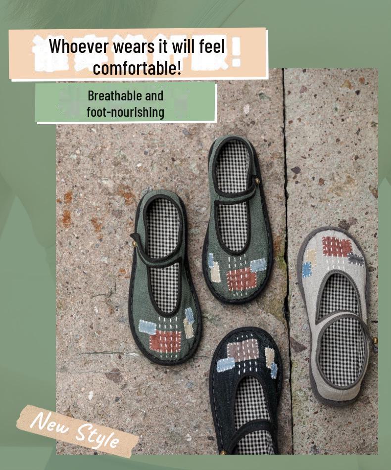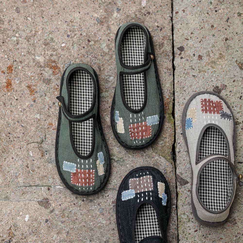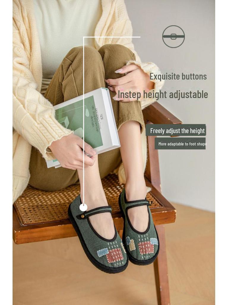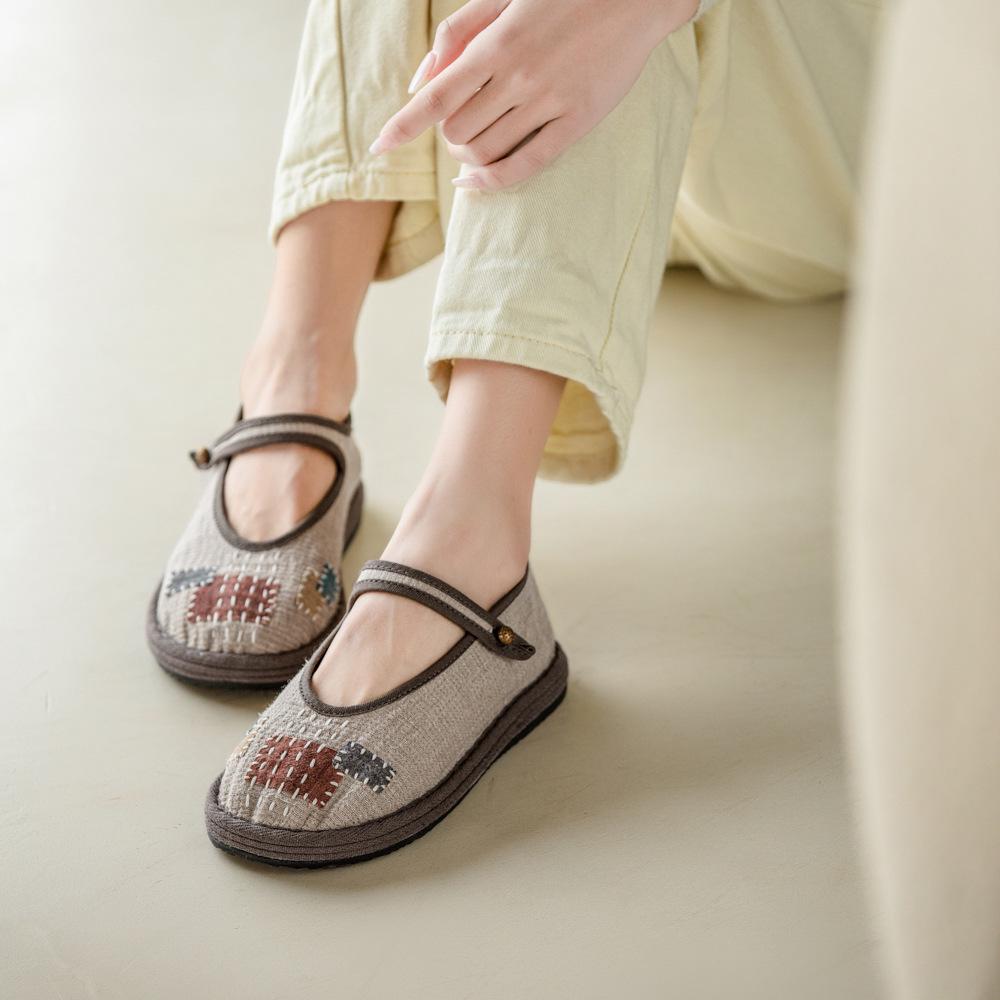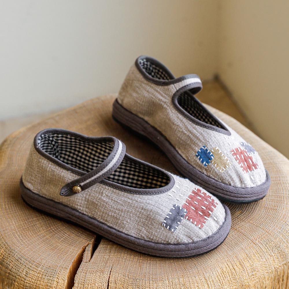 626 Цветная дышащая женская обувь из ткани ручной работы с нашивкой и пряжкой-ниткой