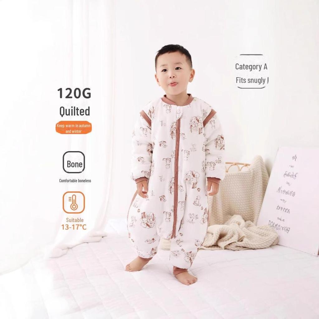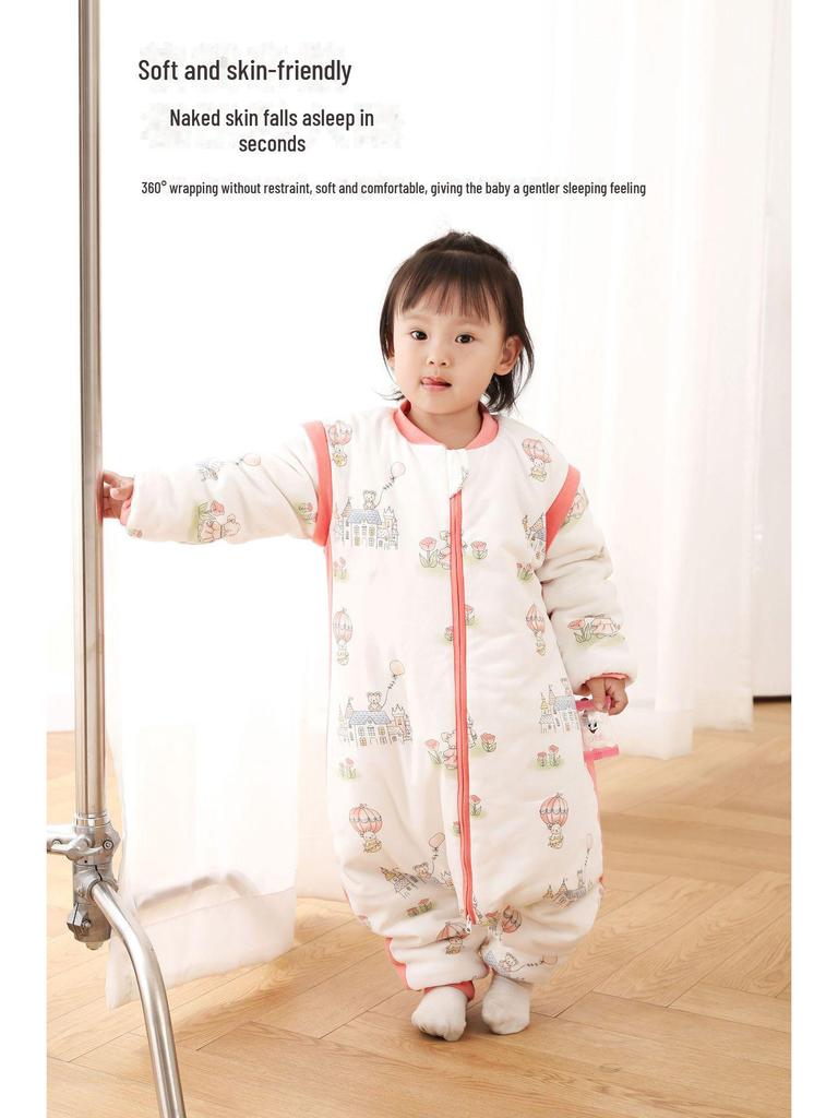 Осенне-зимний спальный мешок для младенцев из плотного хлопка с противоударным дизайном с раздвоенными штанинами и молнией