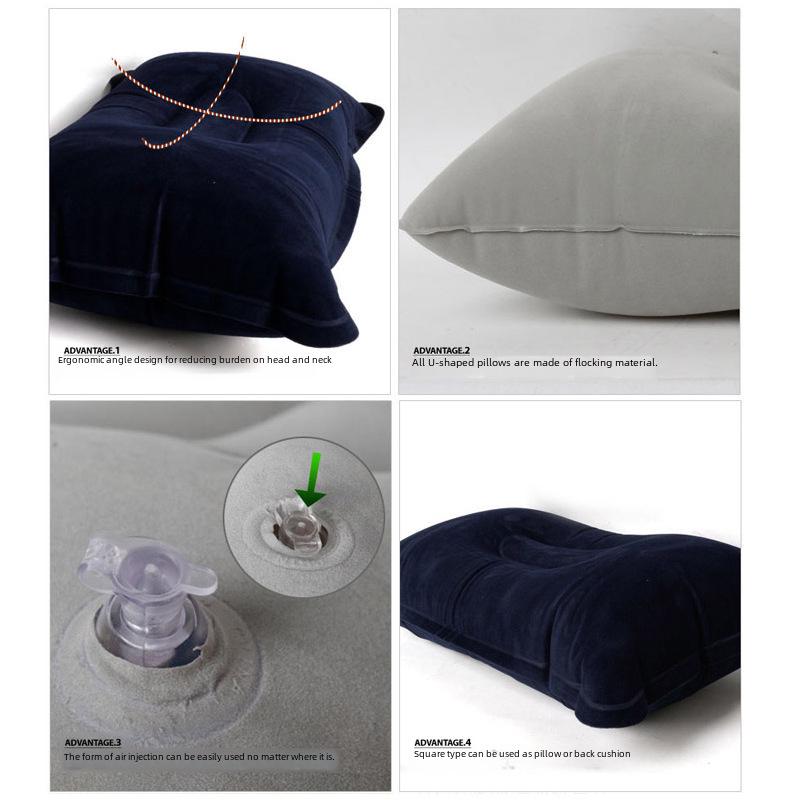 Большая надувная подушка для сна на открытом воздухе с флокированием - портативная и складная подушка для кемпинга и обеденных перерывов