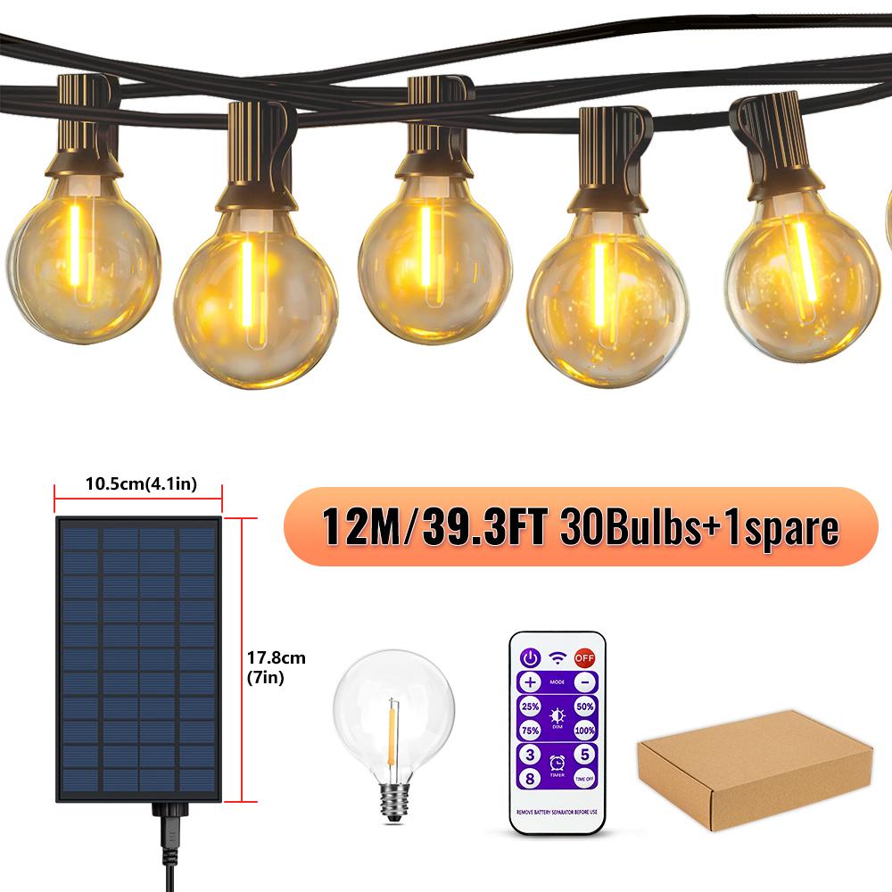 Солнечные гирлянды, уличные светильники G40 для патио, зарядное устройство USB, 8 режимов освещения, небьющиеся лампочки, подвесной светильник, устойчивый к атмосферным воздействиям