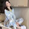 Роскошная женская пижама из искусственного шелка — длинный рукав, свободный крой, легкий весенне-летний кардиган из ледяного шелка с отворотом. — купить товар онлайн с бесплатной доставкой по всему миру!