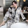 Роскошная женская пижама из искусственного шелка — длинный рукав, свободный крой, легкий весенне-летний кардиган из ледяного шелка с отворотом.