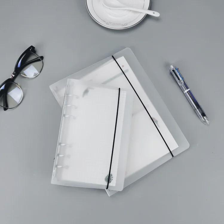 Прозрачная матовая папка-регистратор с отрывными листами и ремешком - форматы A5/A7/A6/B5, 6/4/9 отверстий