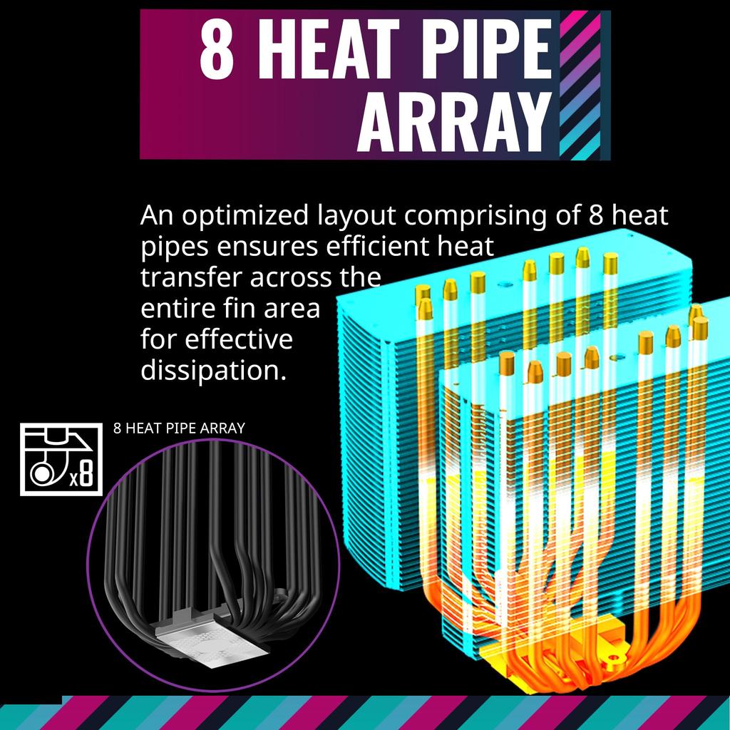 Cooler Master MasterAir MA824 Stealth 8 Heat Pipes Dual Tower Fan Совместим с воздушным охлаждением CPU Cooler FN1995 и LGA1700/AM5/AM4 MAM-D8PN-318PK-R1