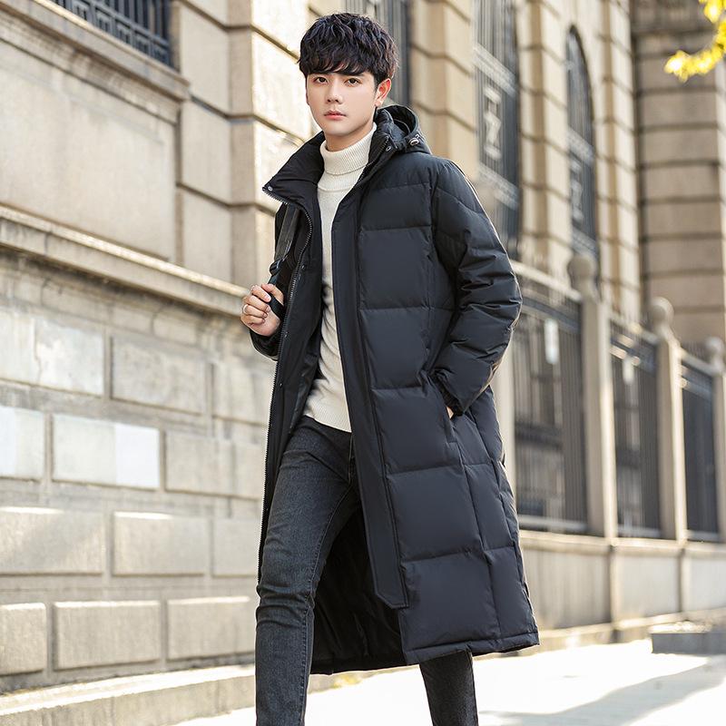 Мужская куртка-пуховик средней длины с капюшоном - зима 2024 г., выше колена, плотная, повседневная, теплая, дизайн для молодежи — купить товар онлайн с бесплатной доставкой по всему миру!