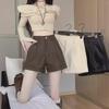 Женские шорты из искусственной кожи с высокой талией — облегающие, свободный крой, широкие штанины, повседневные, на весну, осень, зиму, в американском стиле.