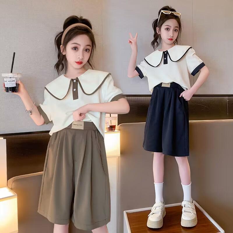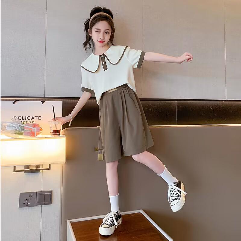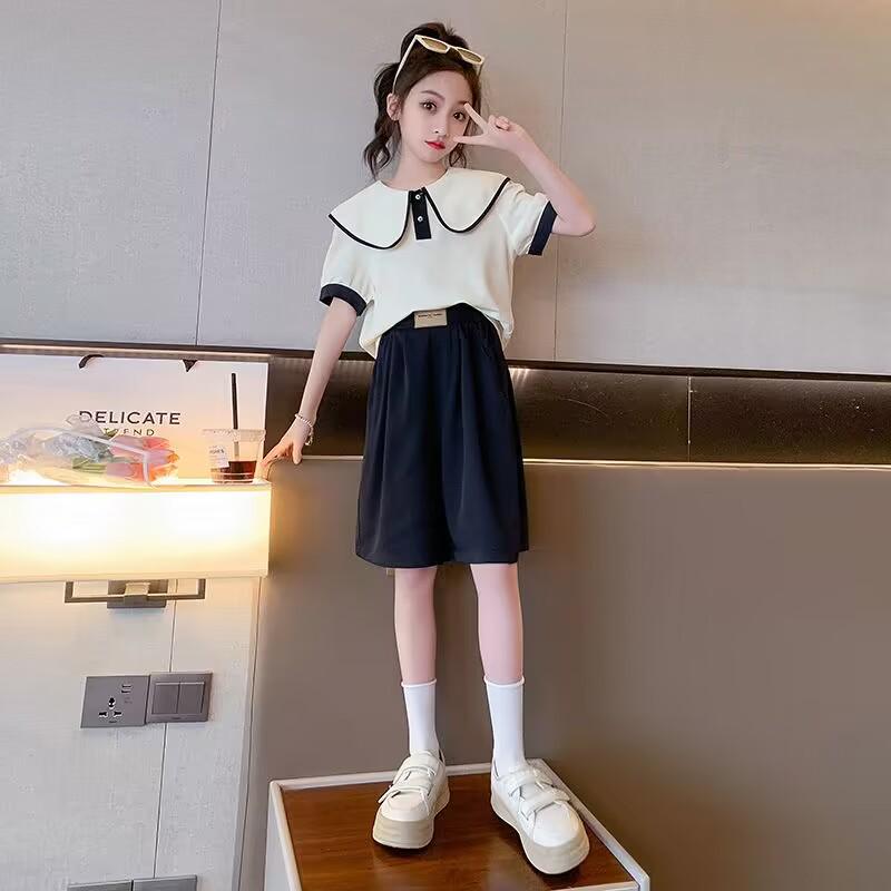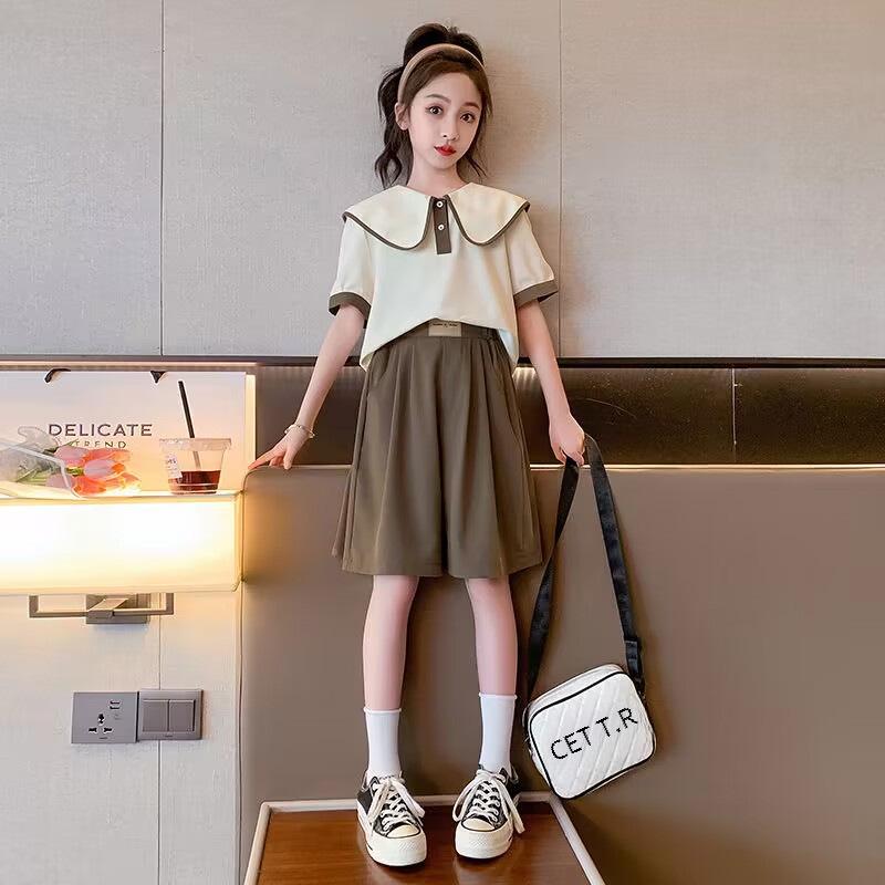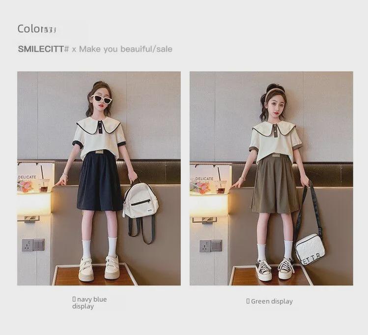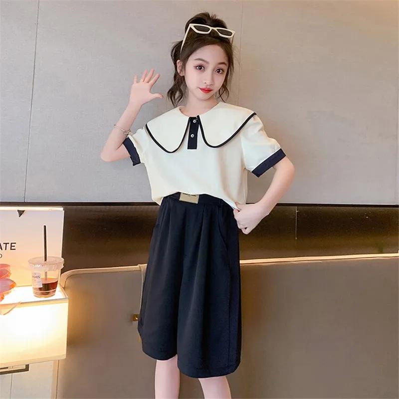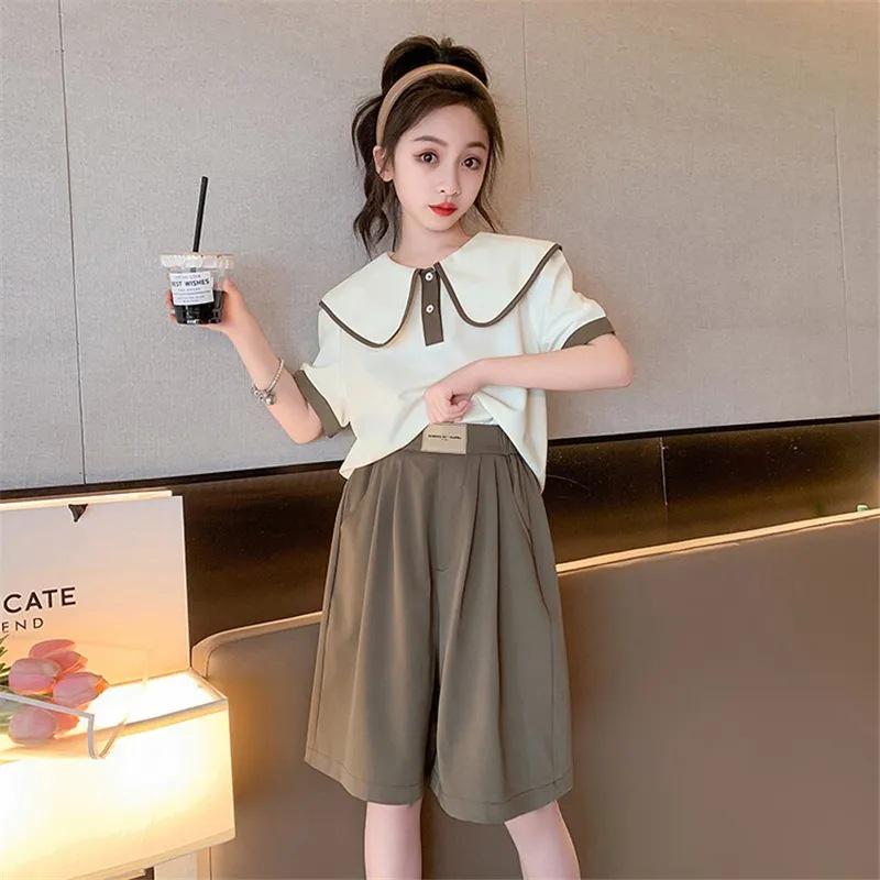Повседневный свободный летний спортивный костюм для девочек - топ с короткими рукавами и шорты, корейский стиль, для детей и подростков