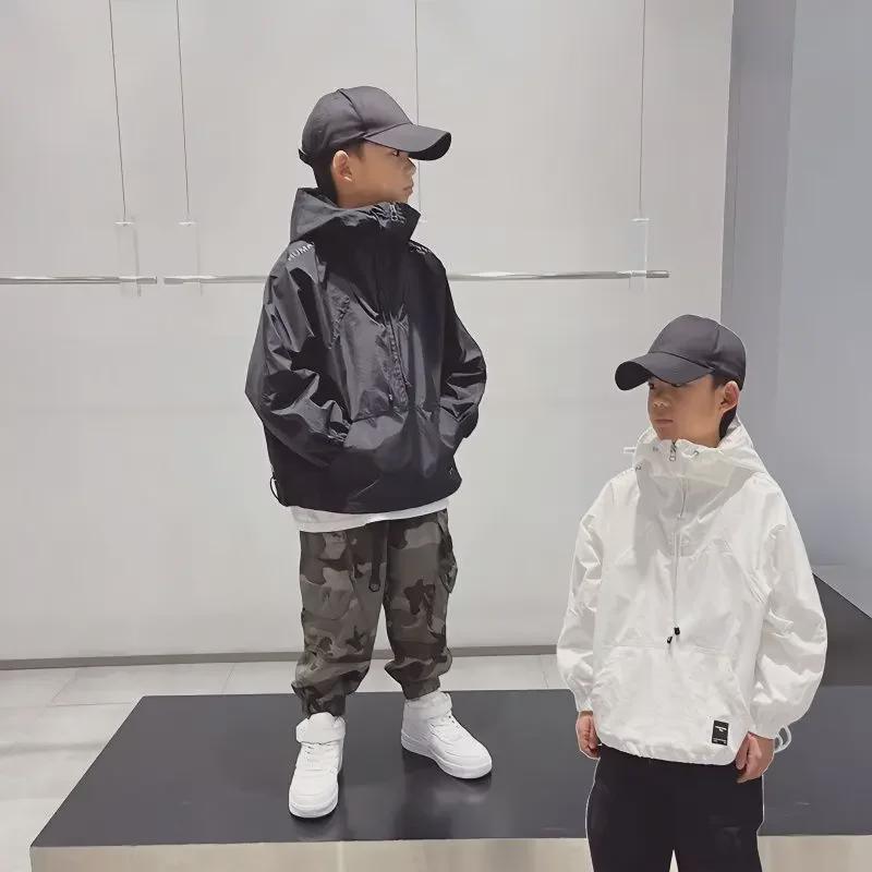 Куртка с капюшоном и полумолнией для мальчиков - стиль весна/осень 2023 для детей