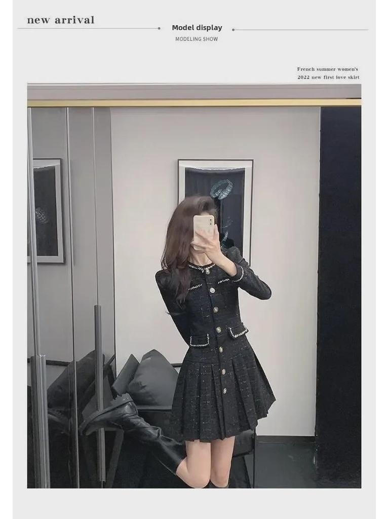 Женское черное платье во французском стиле, утягивающее талию, 2024 г. - Осень/Зима