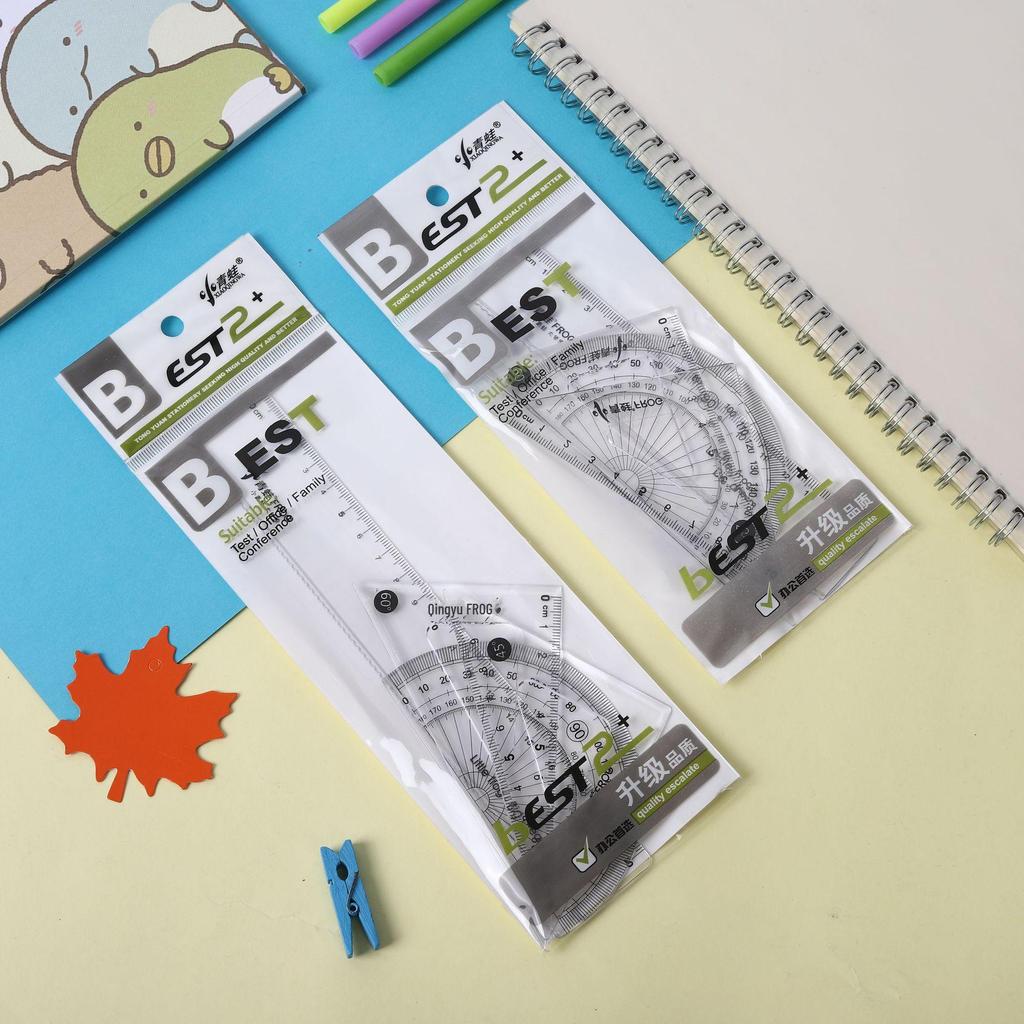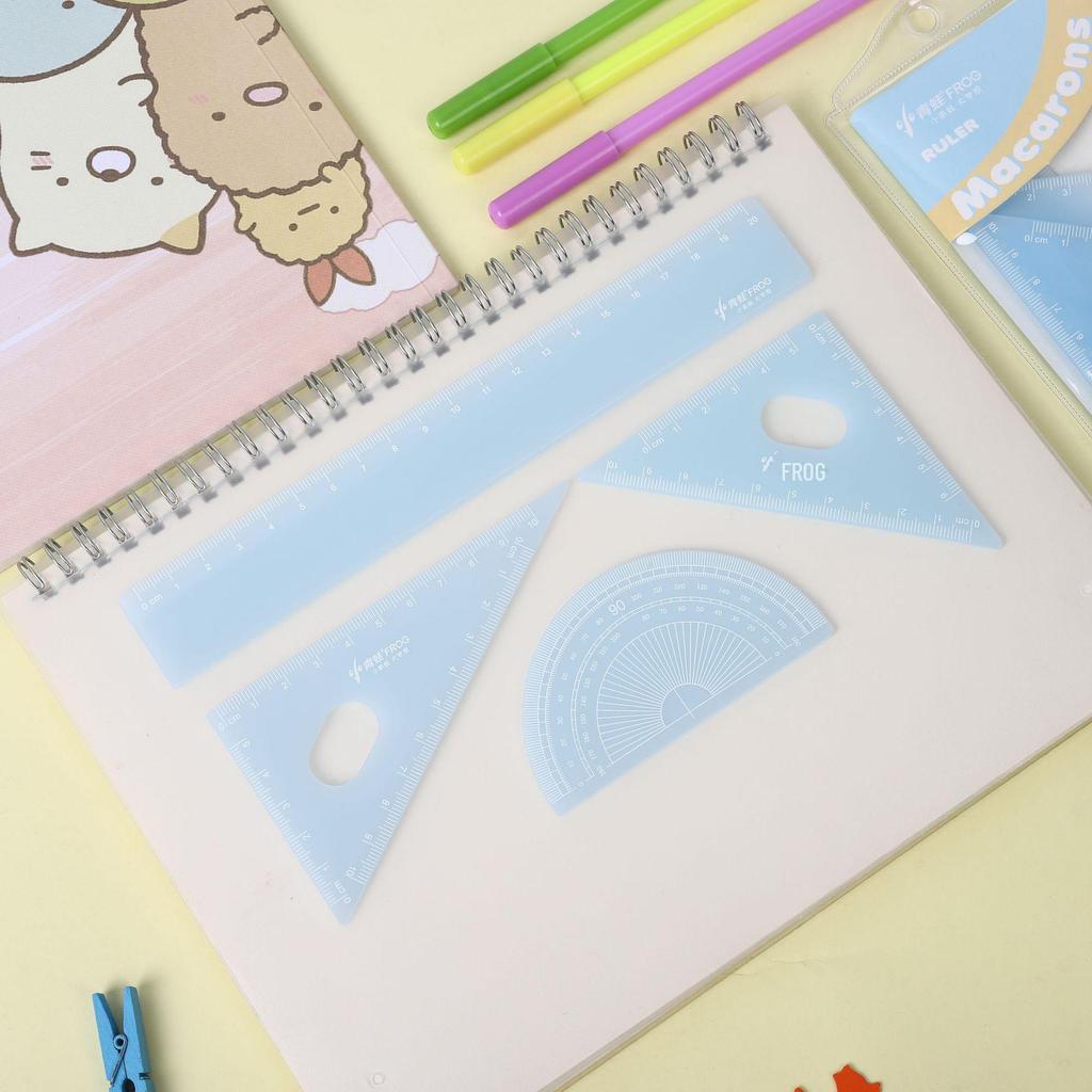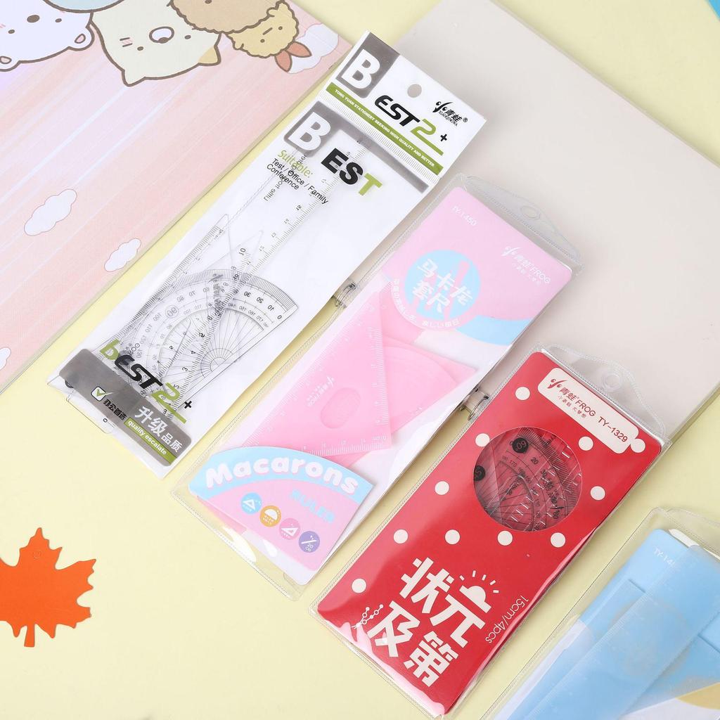 Линейка для цветного желе Macaron: Многофункциональный набор для школьников из четырех предметов с треугольником, транспортиром и линейкой для подготовки к экзаменам